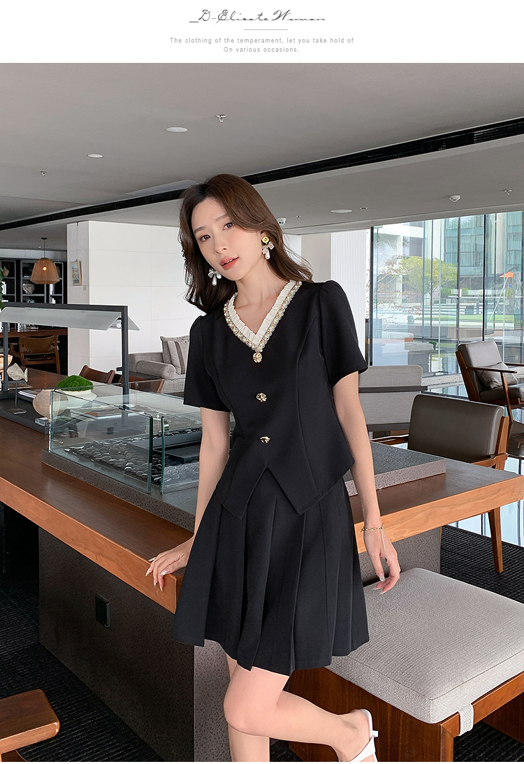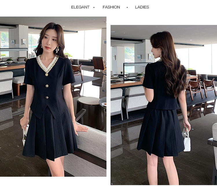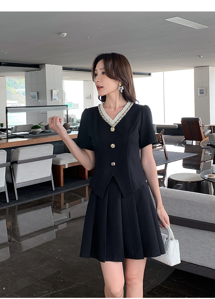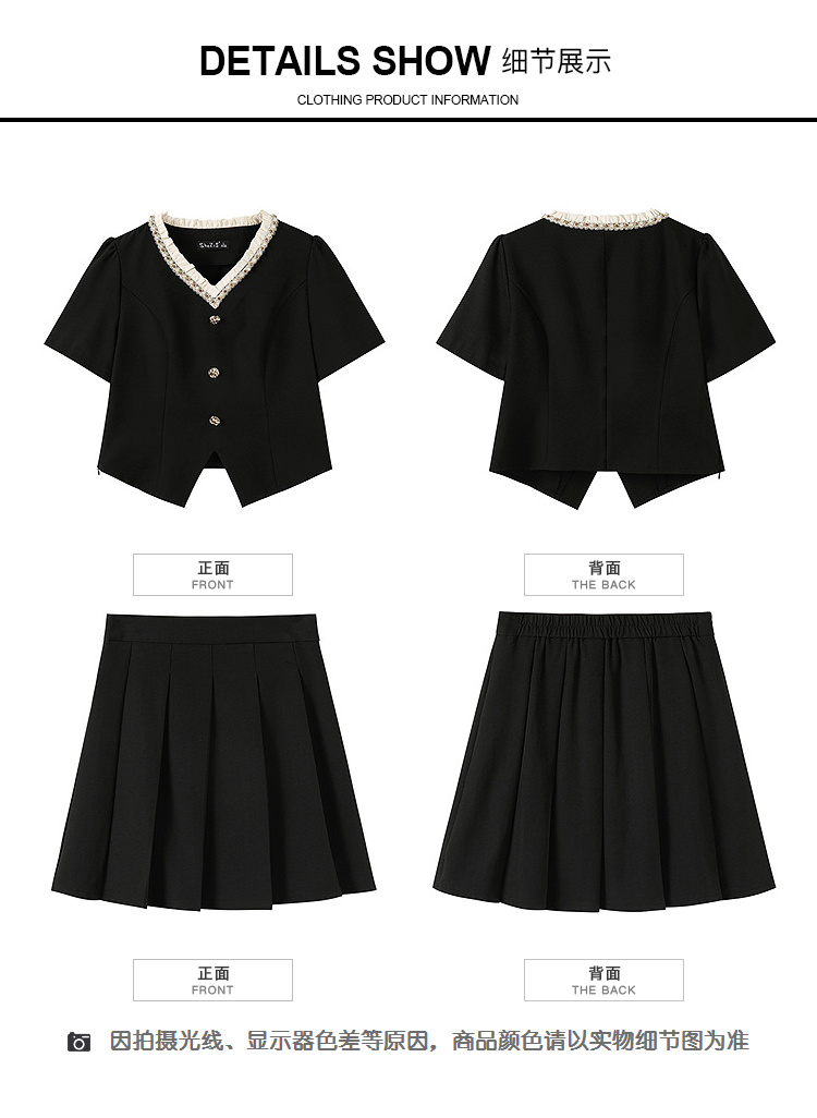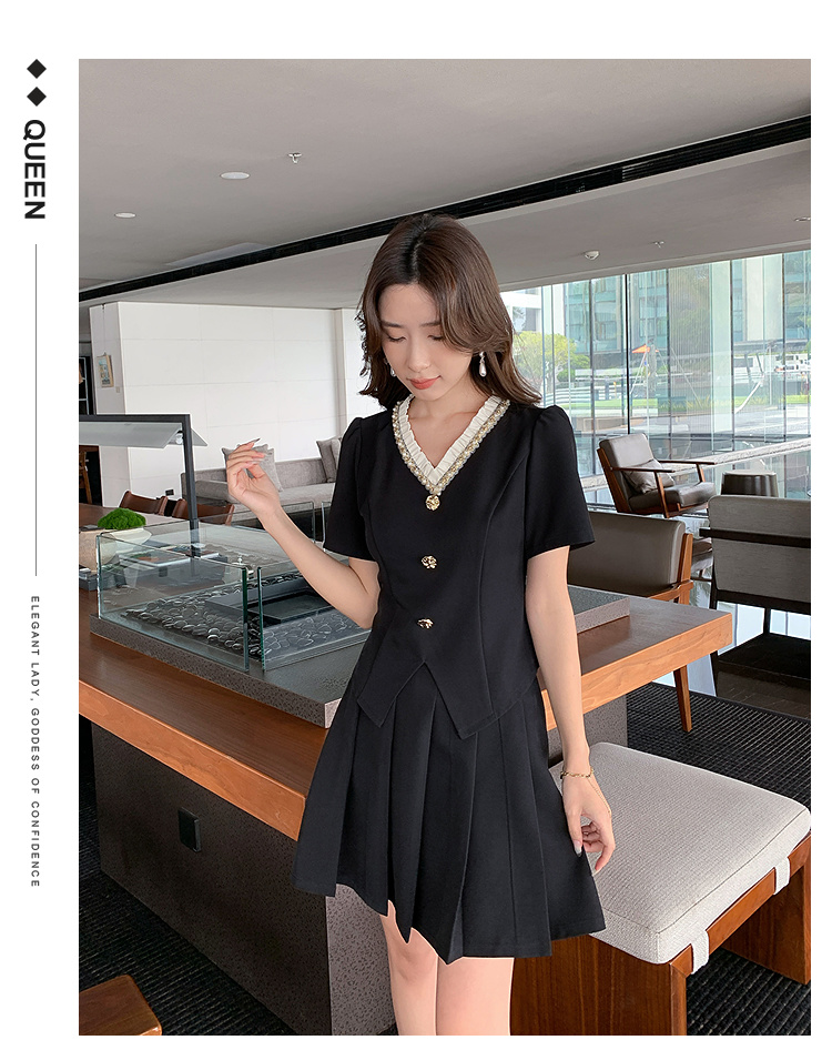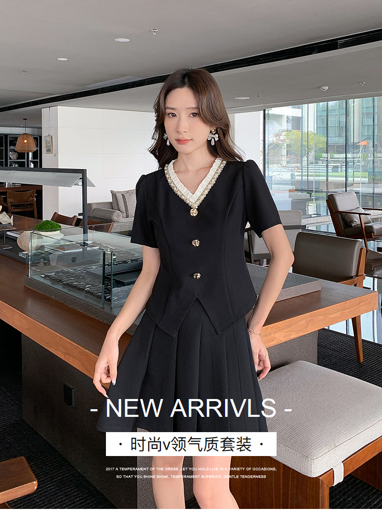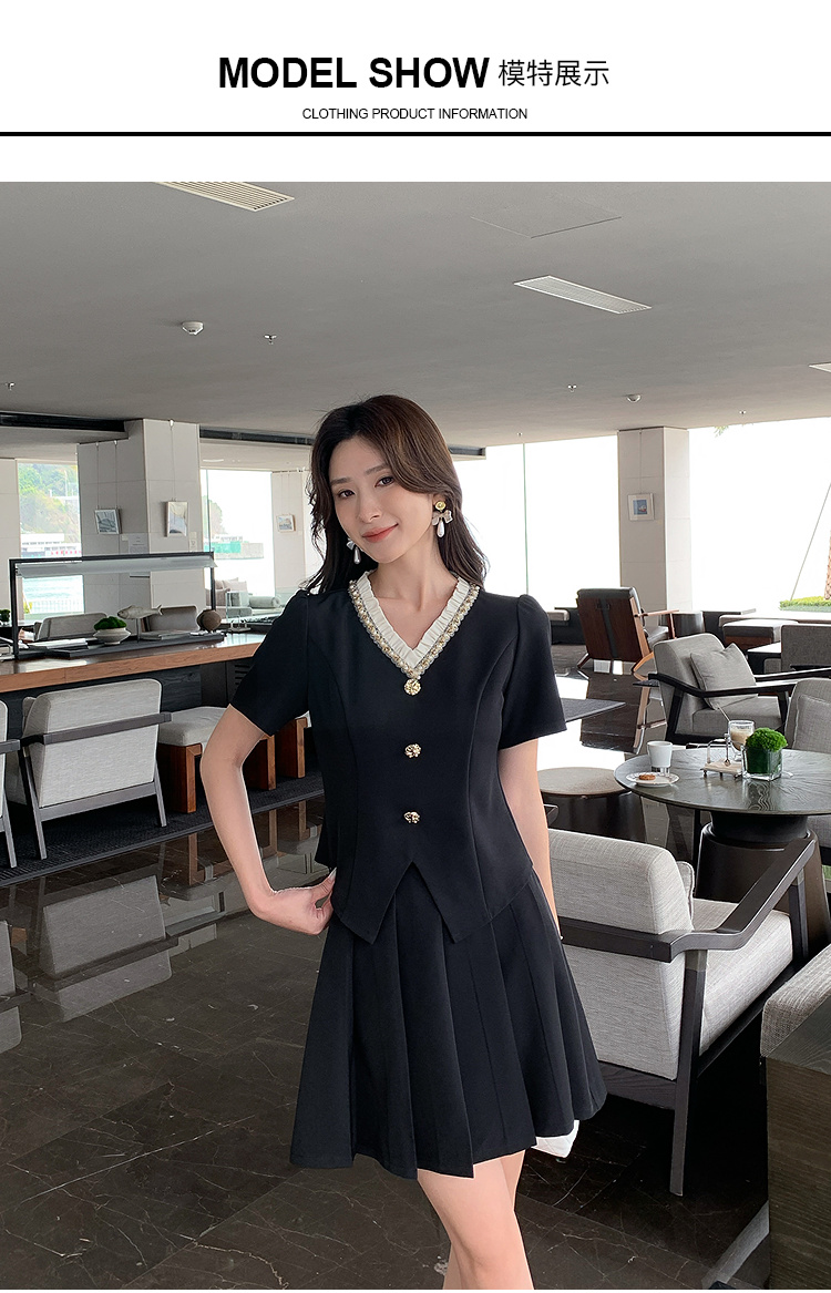 【清仓超15天不保价】奢姿大码女装2025夏季时尚v领短袖套装胖妹妹气质优雅简约两件套9952953280【1】