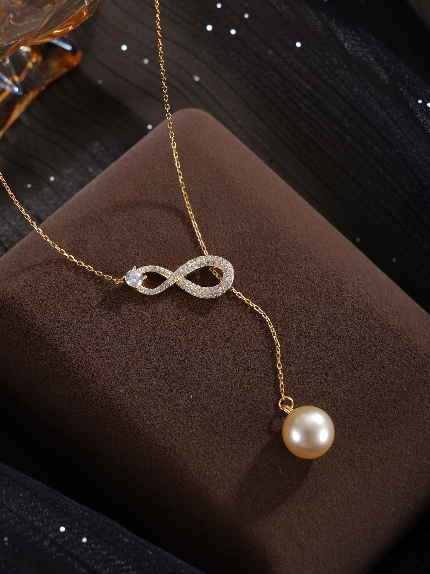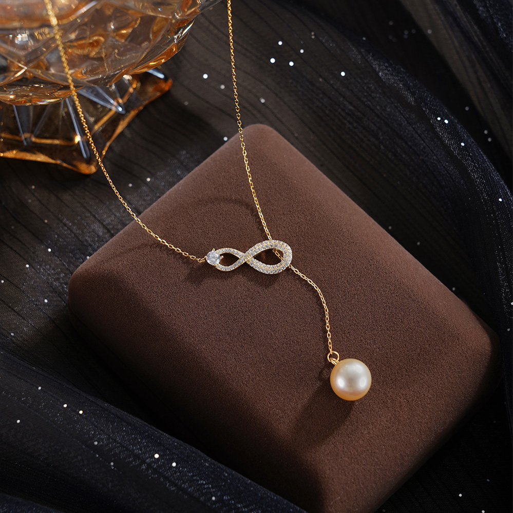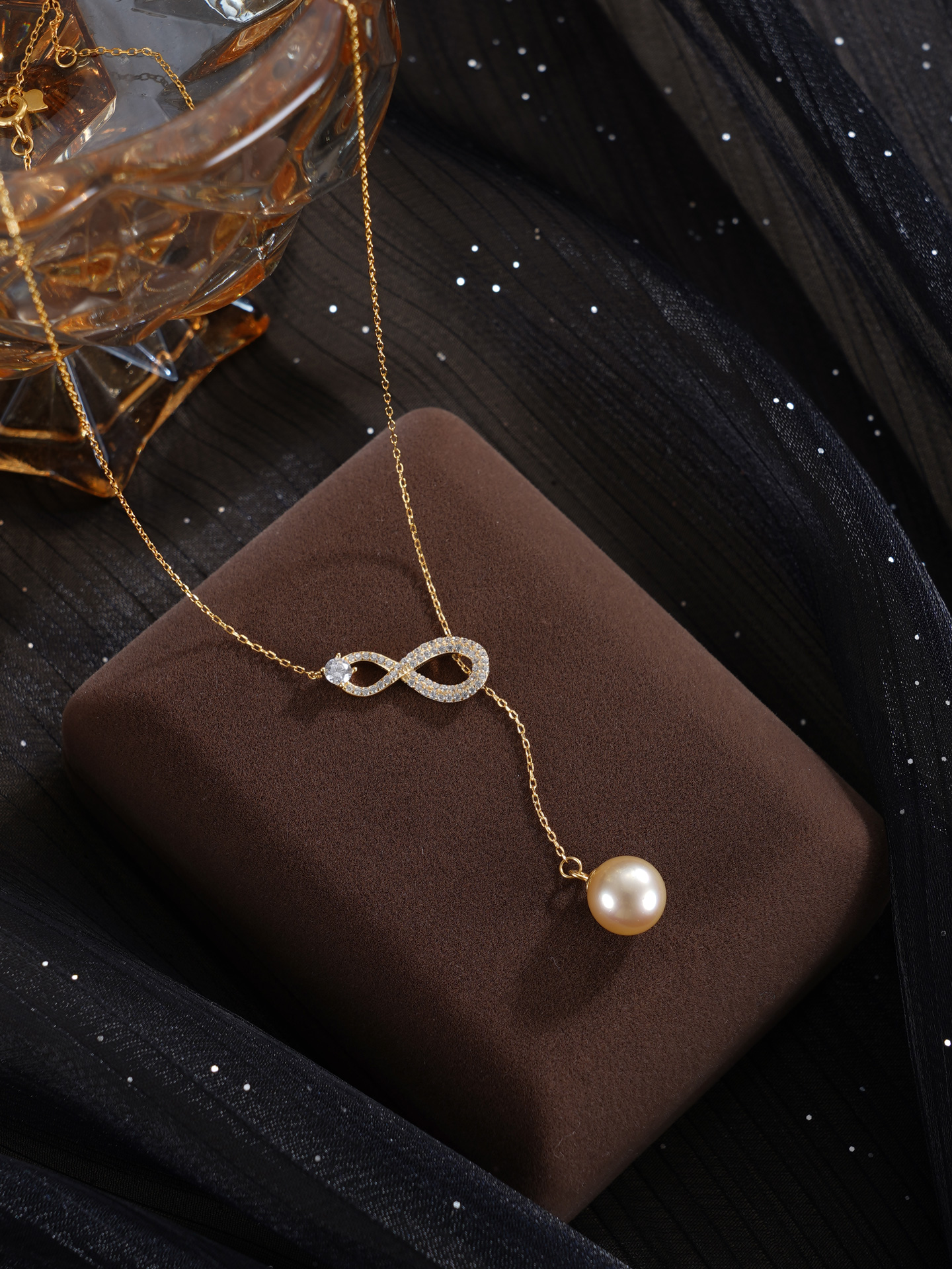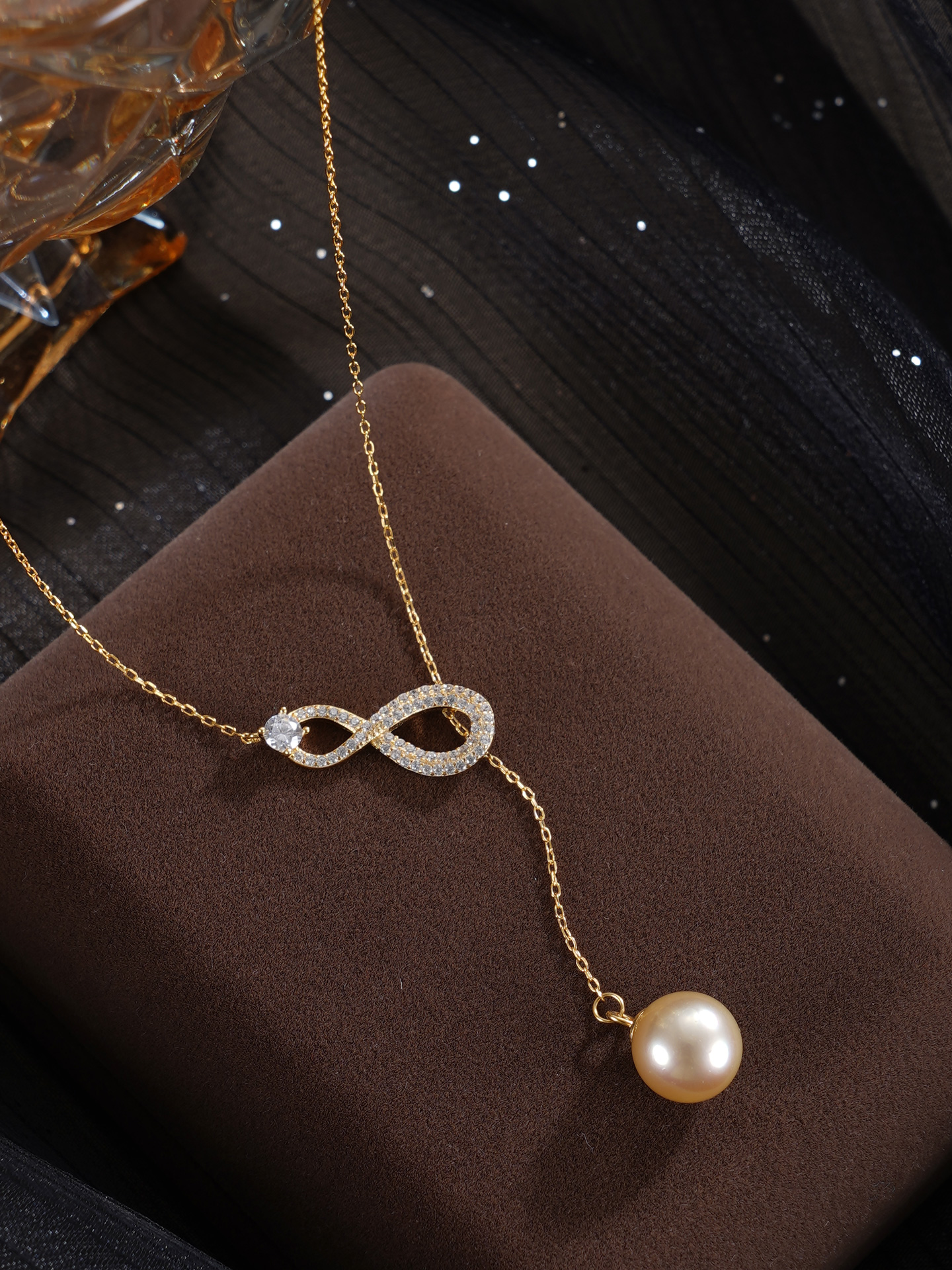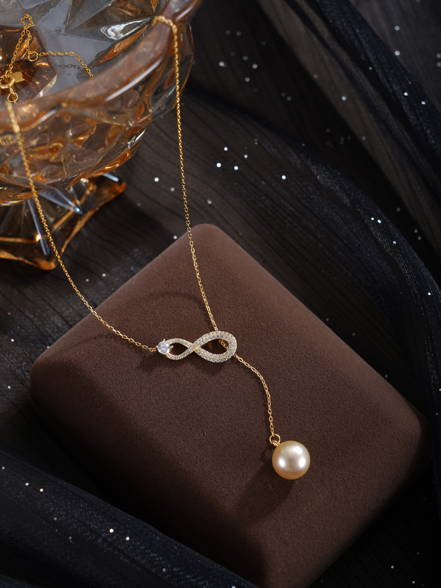 子佩集【爱意无垠】银S925珍珠惜王妃套链【HJYTL010】9.2mm珠镀金8字金色珠吊球2601