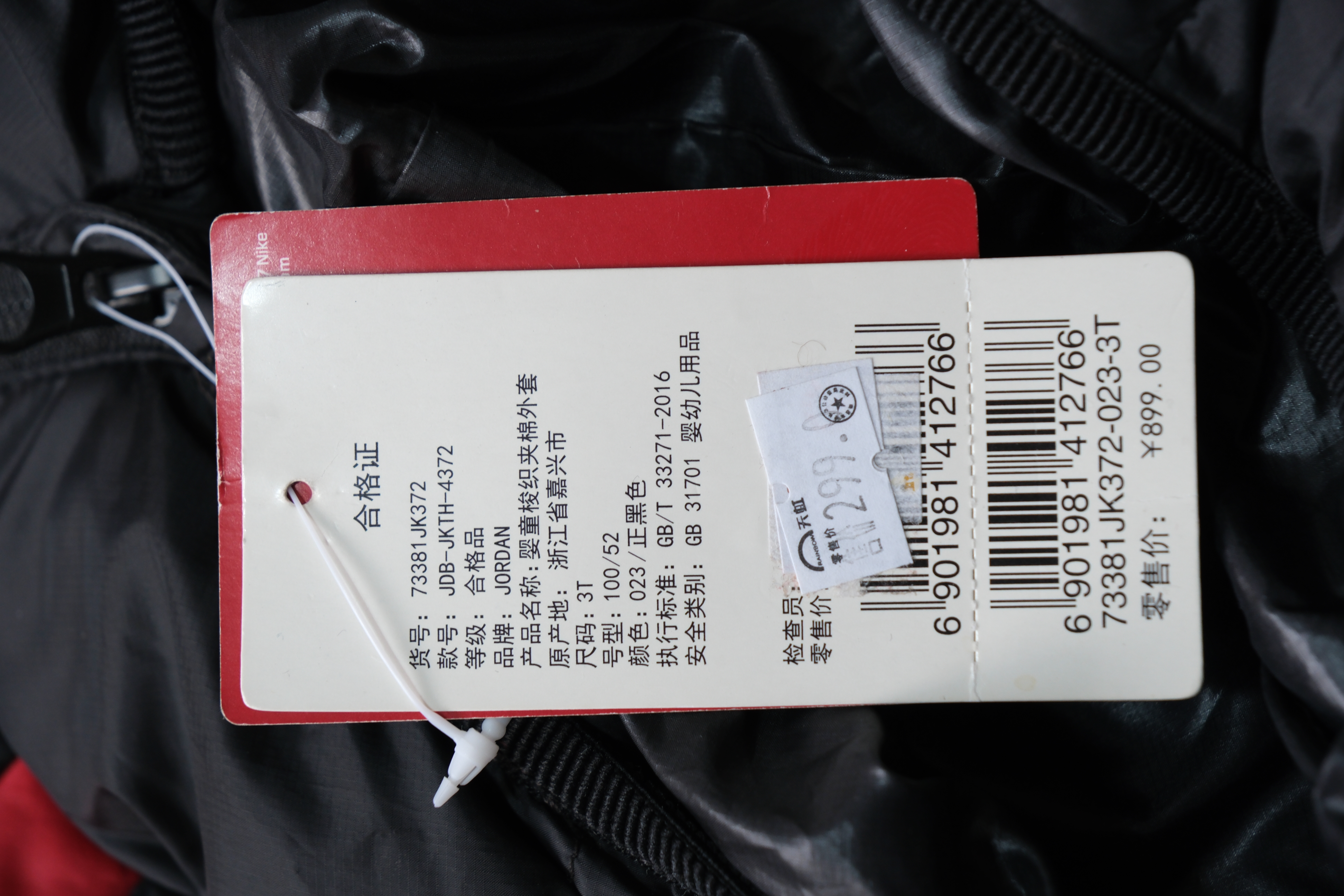 JORDAN乔丹童衣男婴童棉夹克正黑色73381JK3720232T