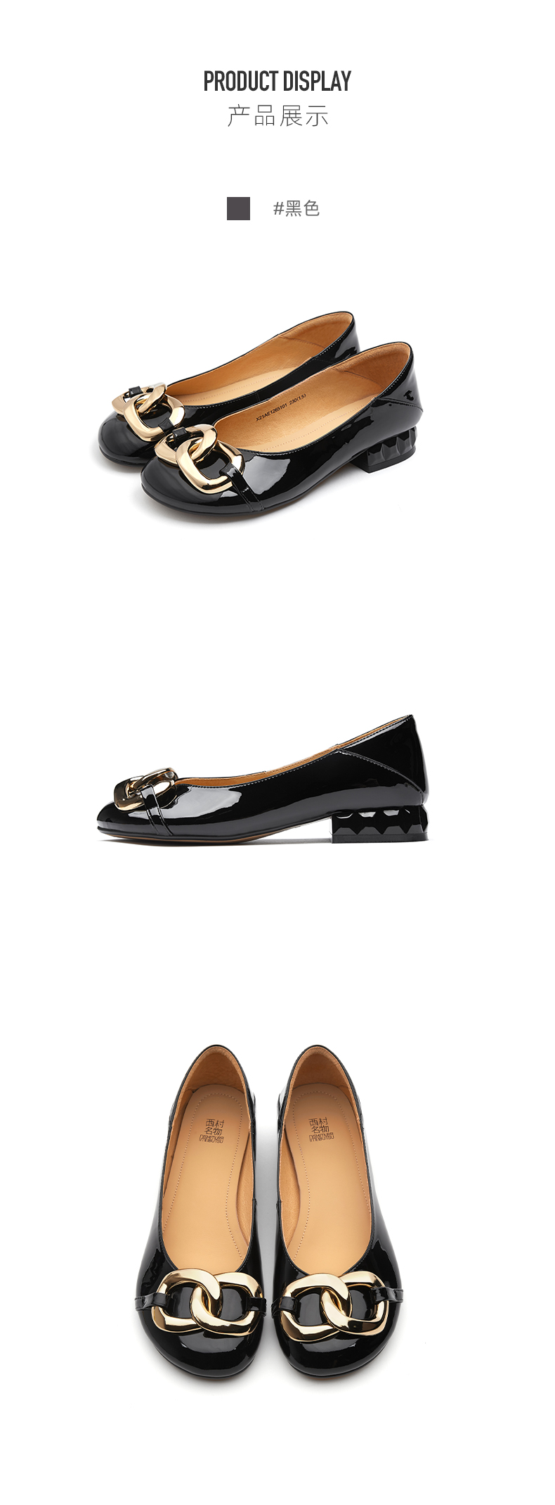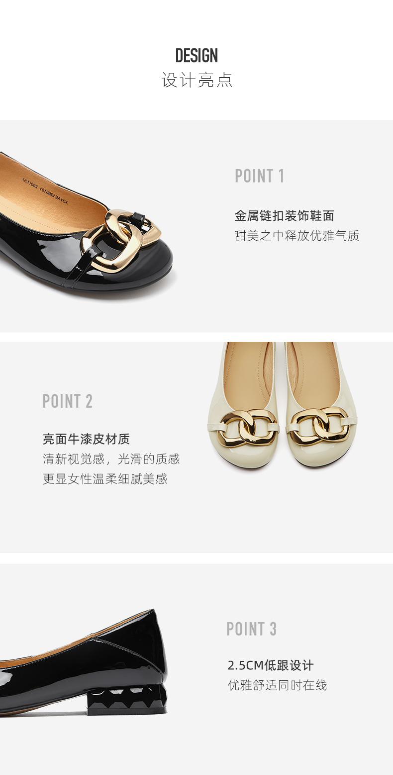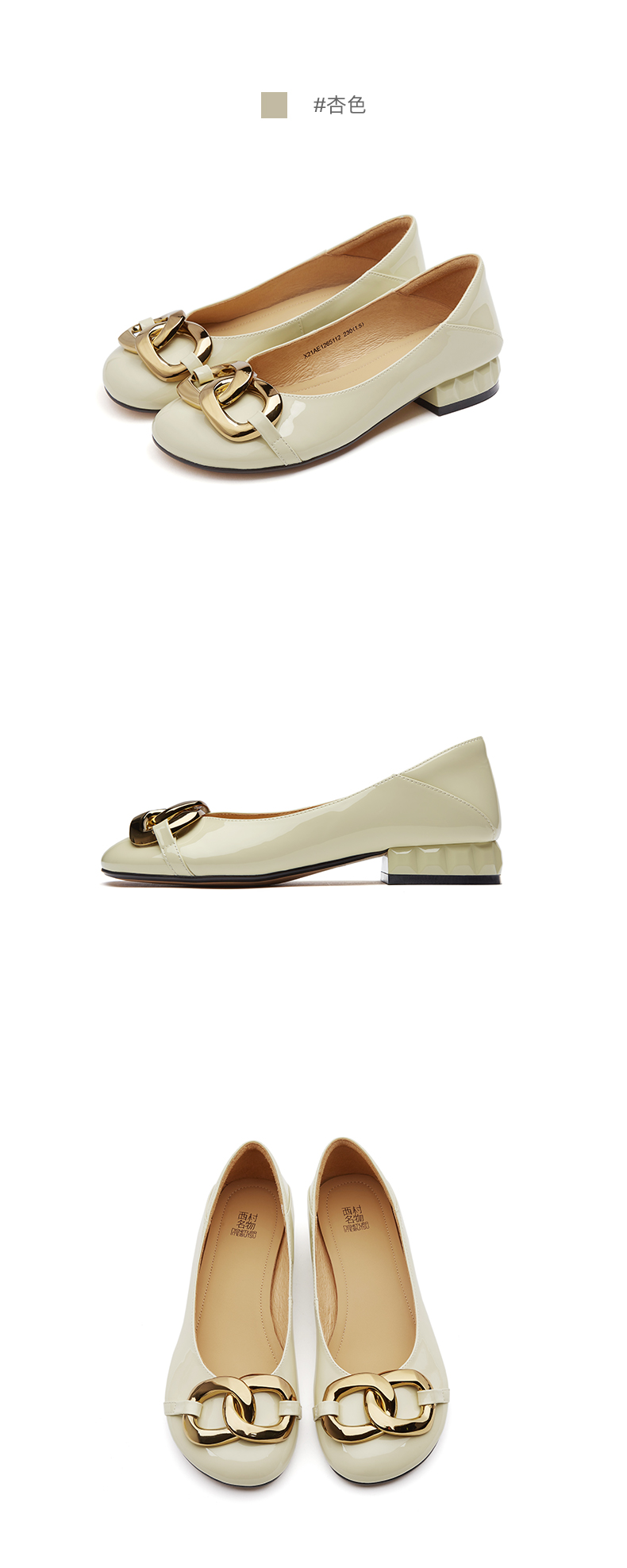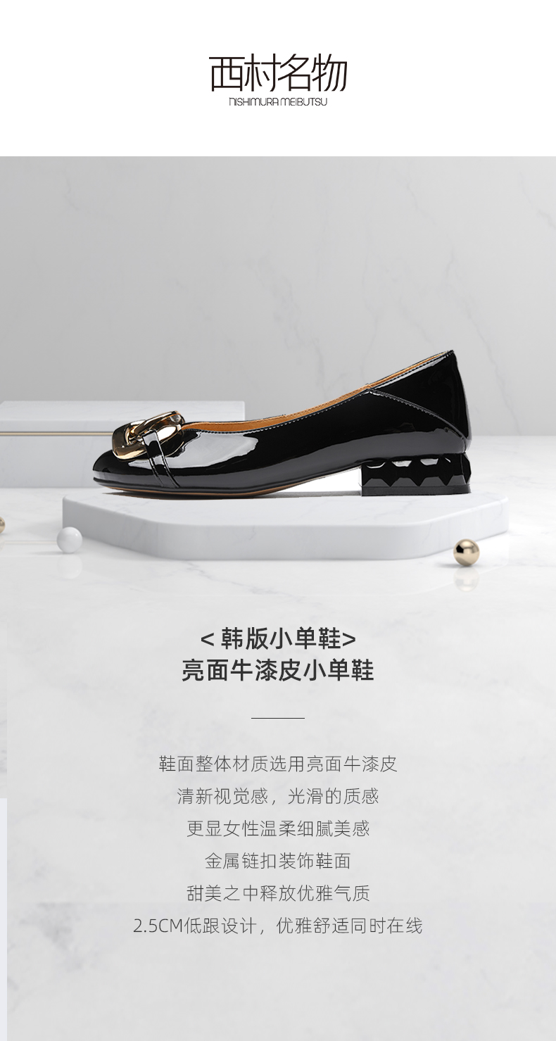 西村名物2021春季新款开车平底鞋女浅口单鞋金属扣瓢鞋粗跟X21AE12651