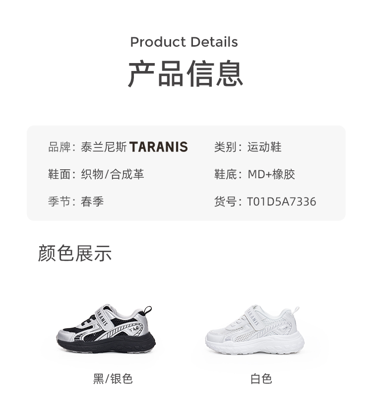 泰兰尼斯新款时尚男童旋转扣软底舒适榴莲底运动鞋T01D5A7336