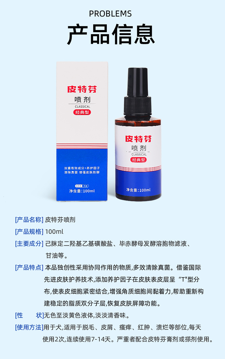 金盾皮特芬狗狗皮肤病真菌除螨虫喷剂猫藓外用药皮特分猫癣药喷雾