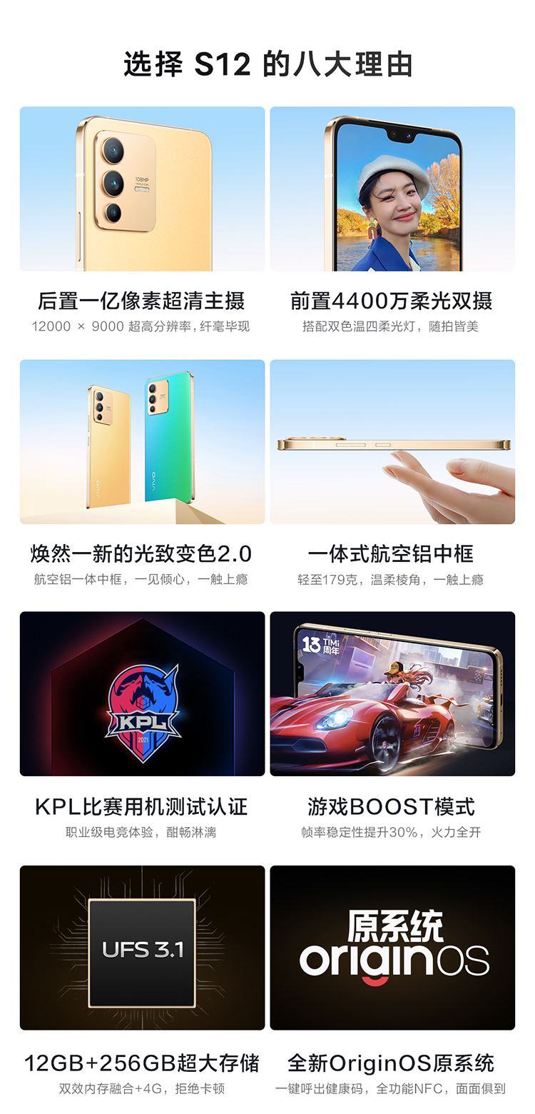 vivo S12先锋影像旗舰 拍照手机 游戏BOOST模式,后置一亿像素超清主摄 屿蓝 12G+256G