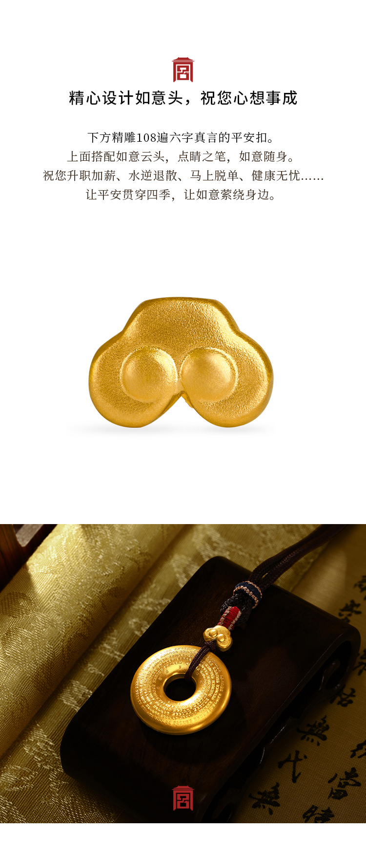 宫匠造办 宫廷如意平安扣黄金吊坠