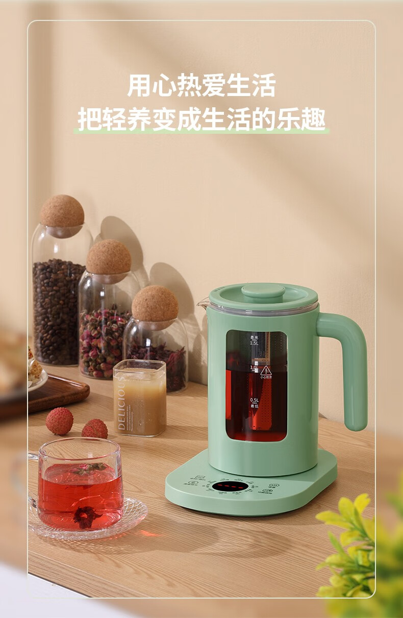 利仁(Liven) 养生壶煮茶器煮茶壶智能电水壶烧水壶电热水壶迷你玻璃花茶壶黑茶LPYH-D1528