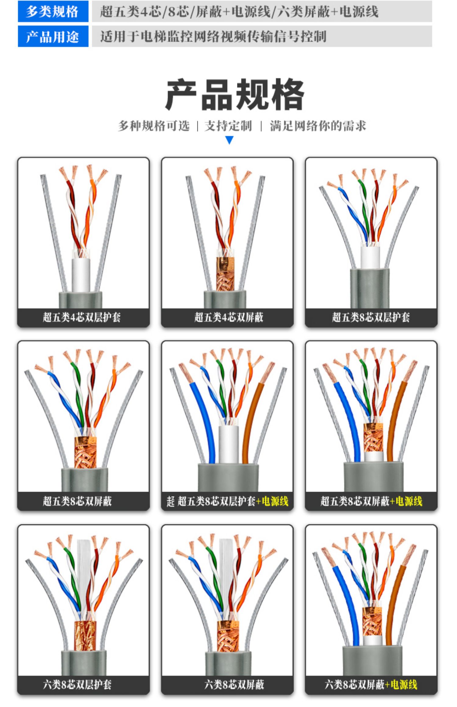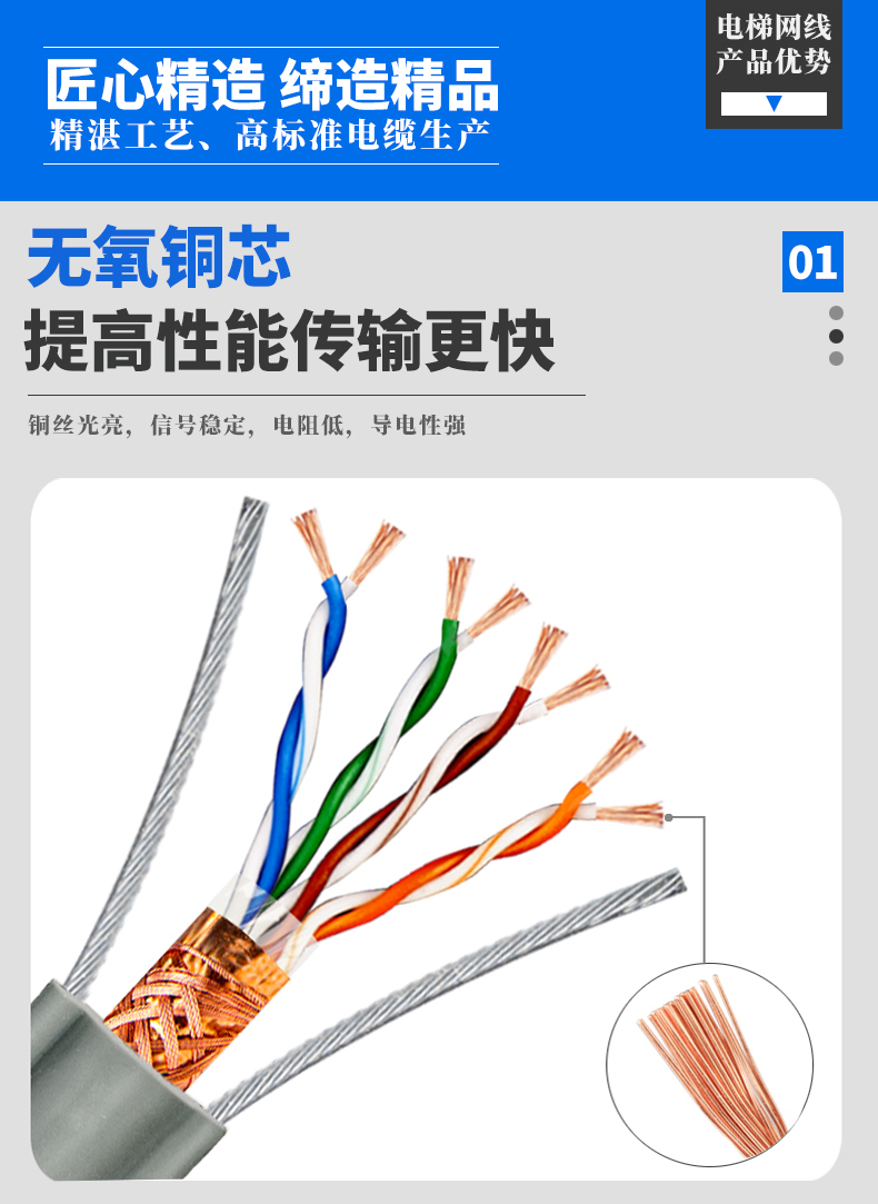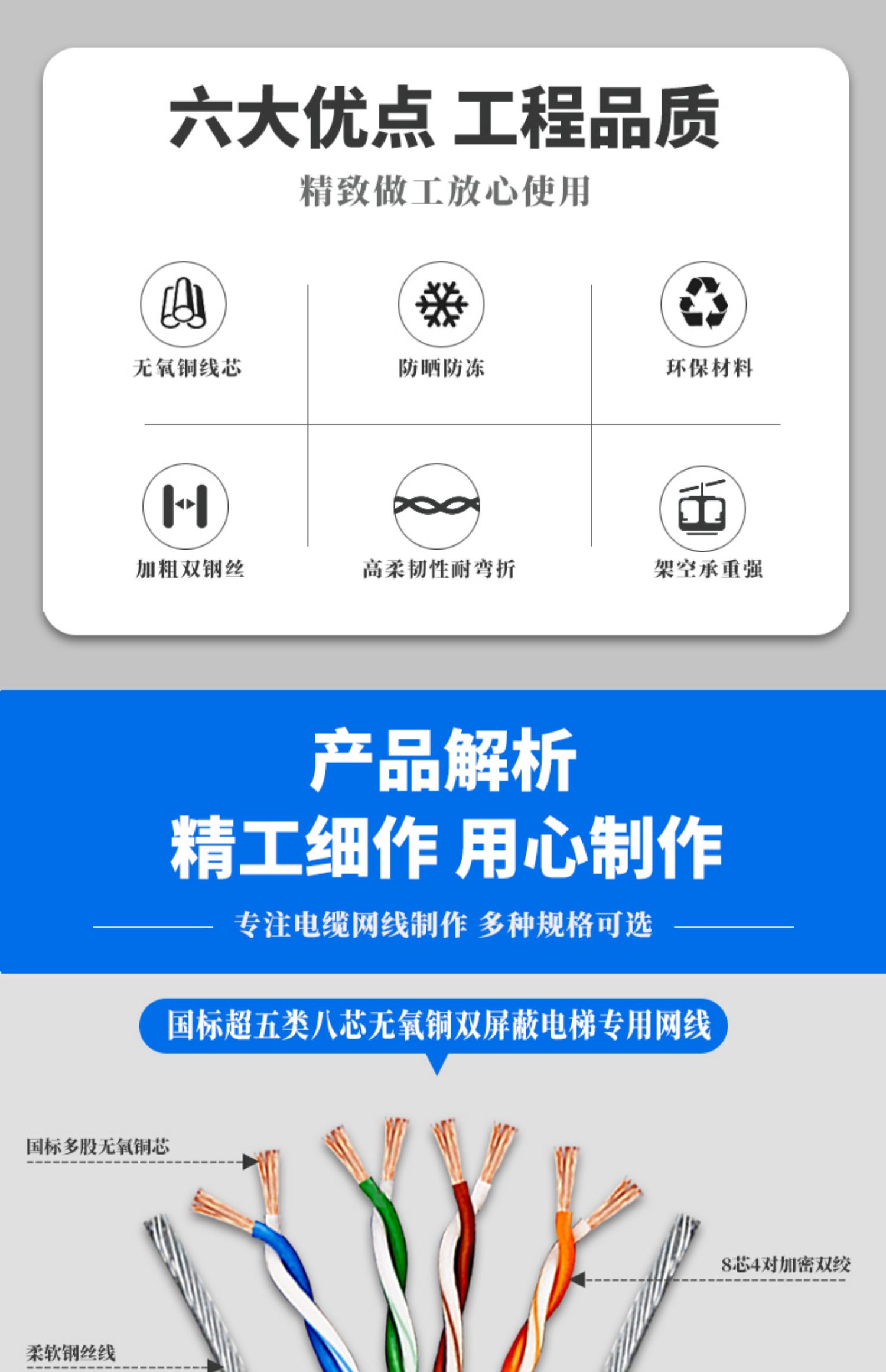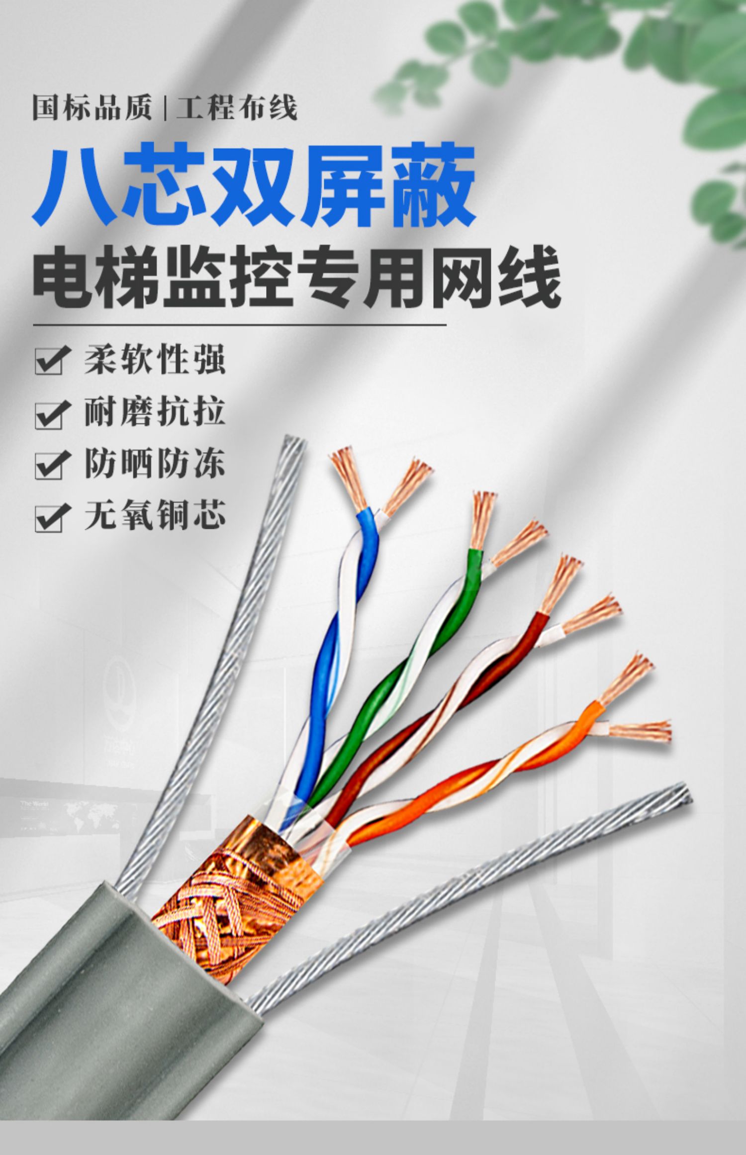 批发@电梯线国标纯铜六类电梯监控网线摄像专用线电梯专用网线8芯双钢丝电梯网线电梯专用网线国标随行双钢丝8芯纯铜扁平拖链电缆电源线监控摄像