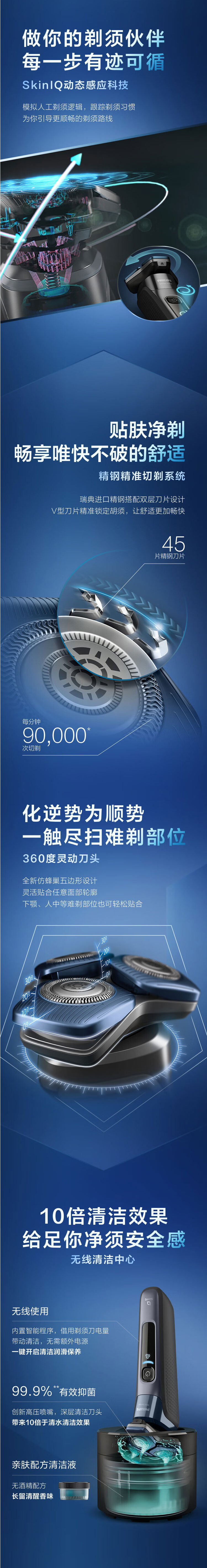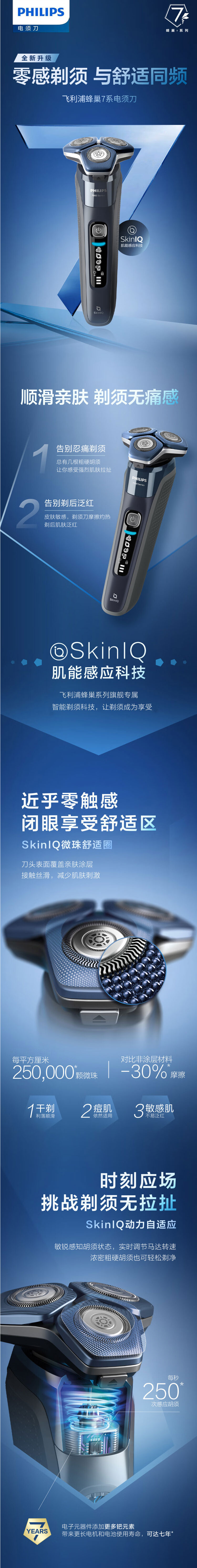 飞利浦PHILIPS男士剃须刀电动胡须刀肌能感应智能刮胡刀送男友送父亲礼物 新蜂巢7S7832