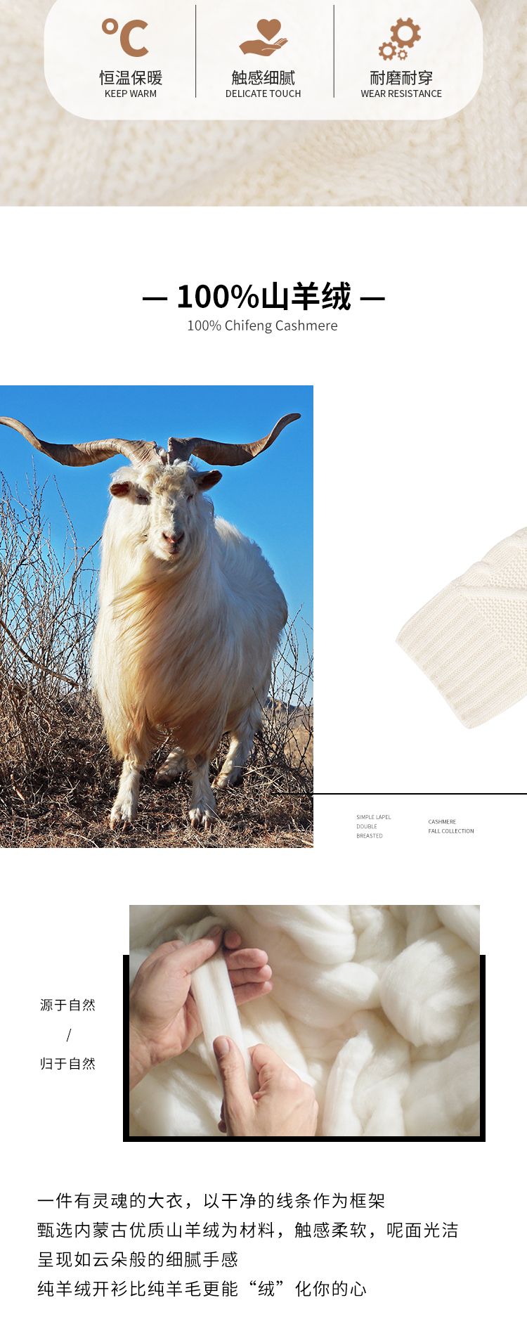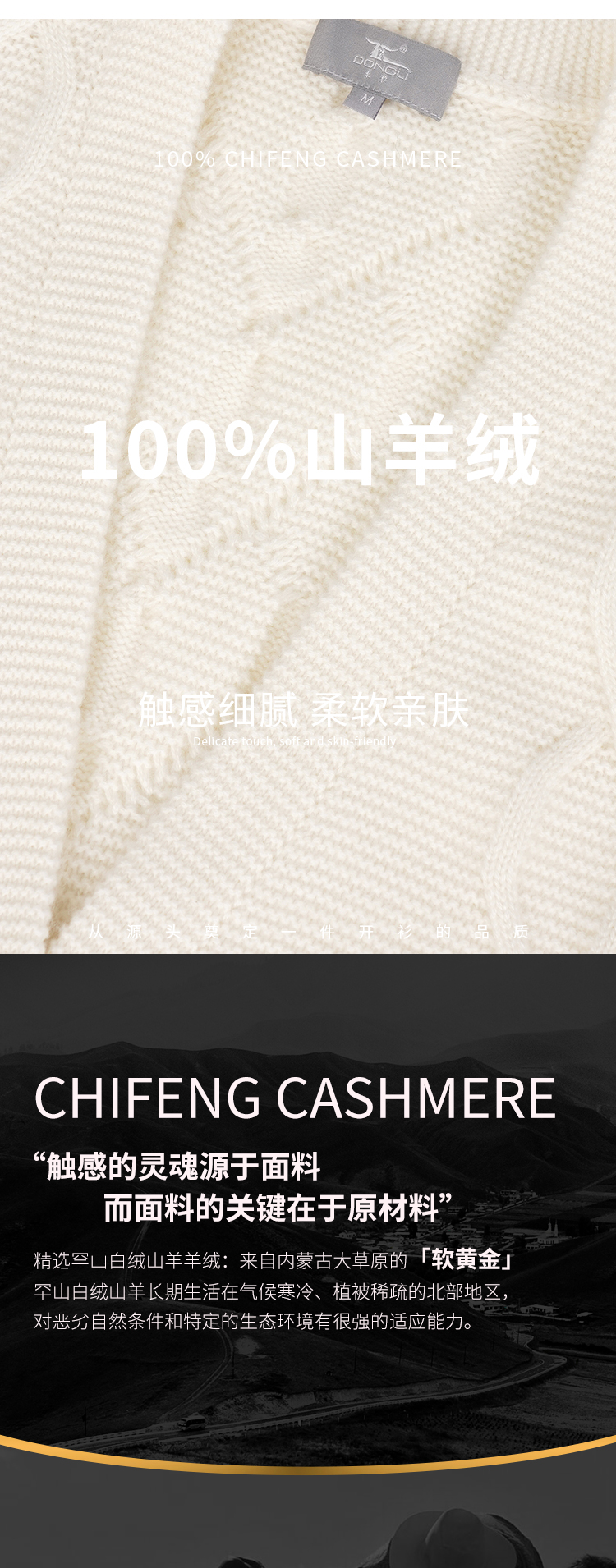 东黎羊绒是赤峰东荣集团自主品牌,自有牧场/羊绒制品全产业链优势,实现了羊绒从“牧场”到“商场”的华丽转变。