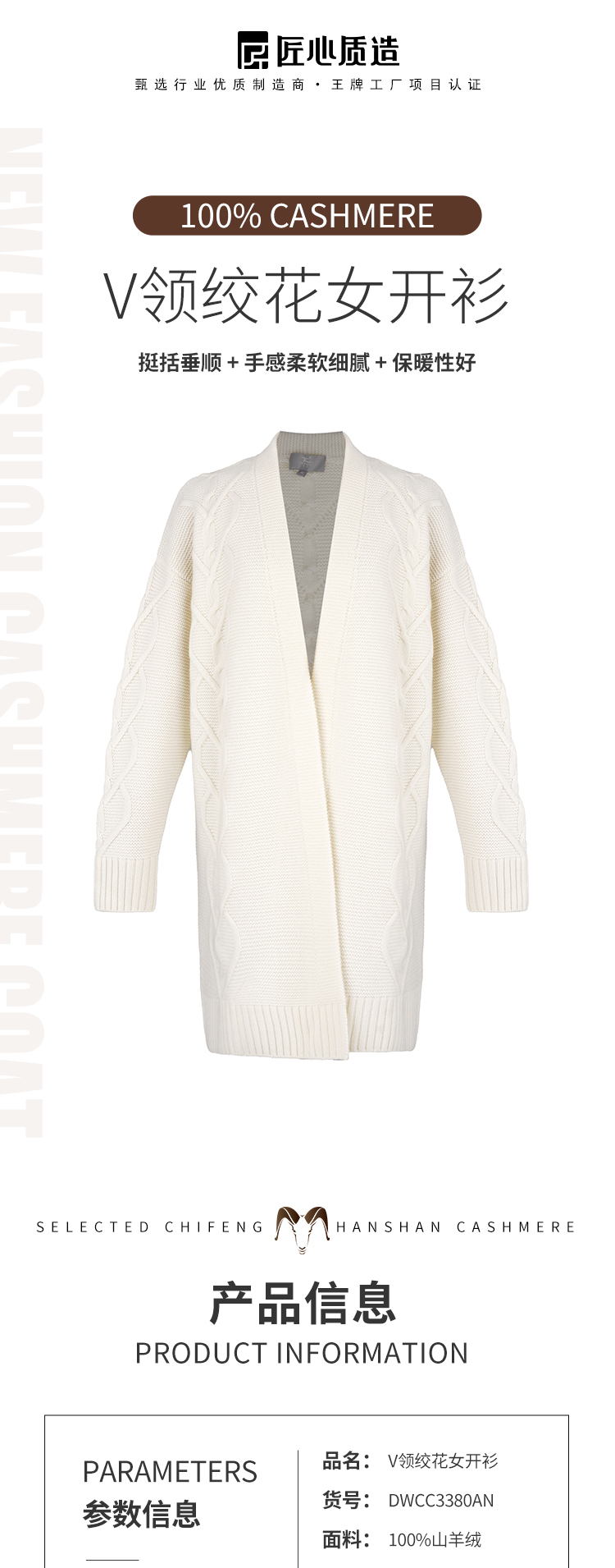 东黎 • 山羊绒女士秋冬绞花开衫 3380