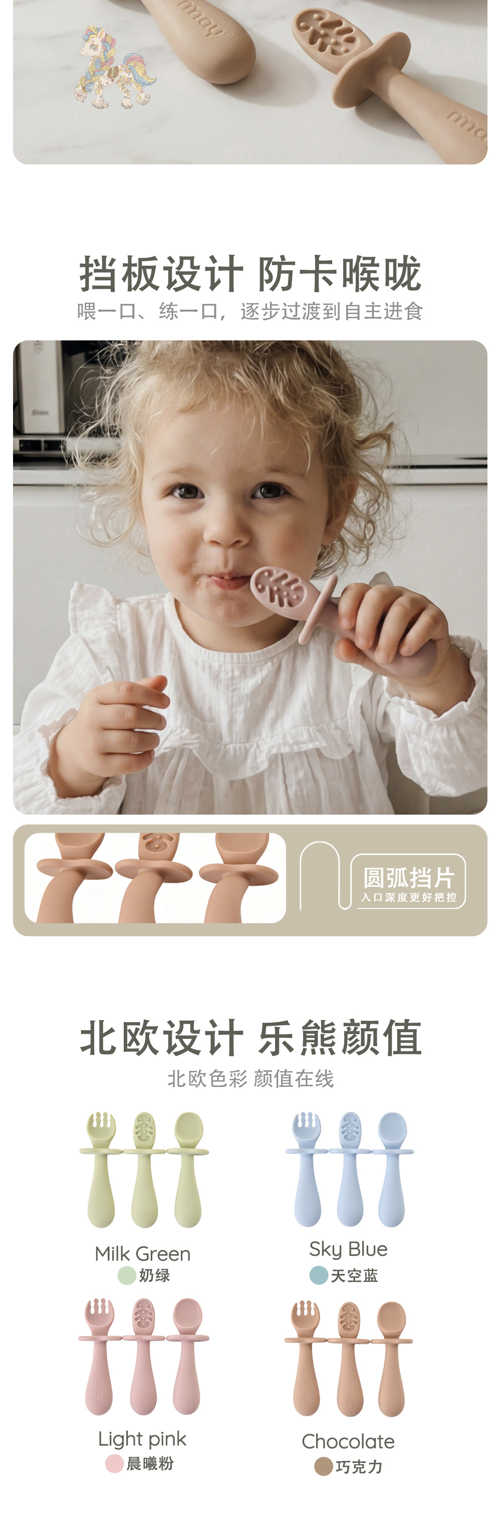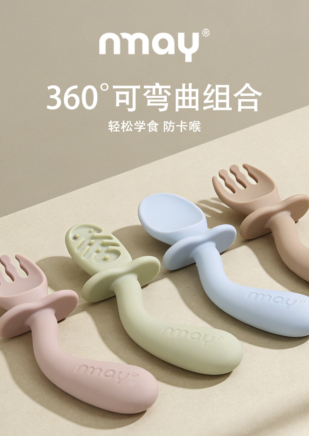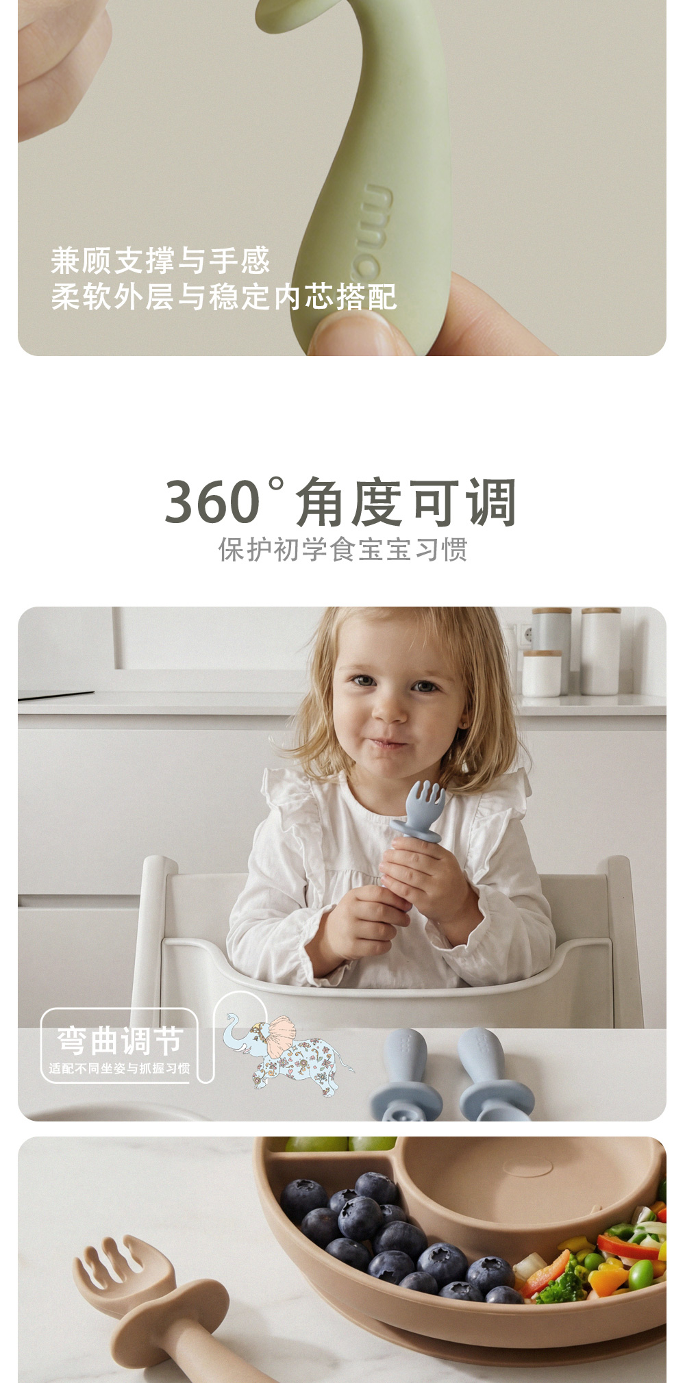 nmay 乐熊系列 360°弯曲辅食勺三件套 勺子叉子儿童宝宝辅食6月+