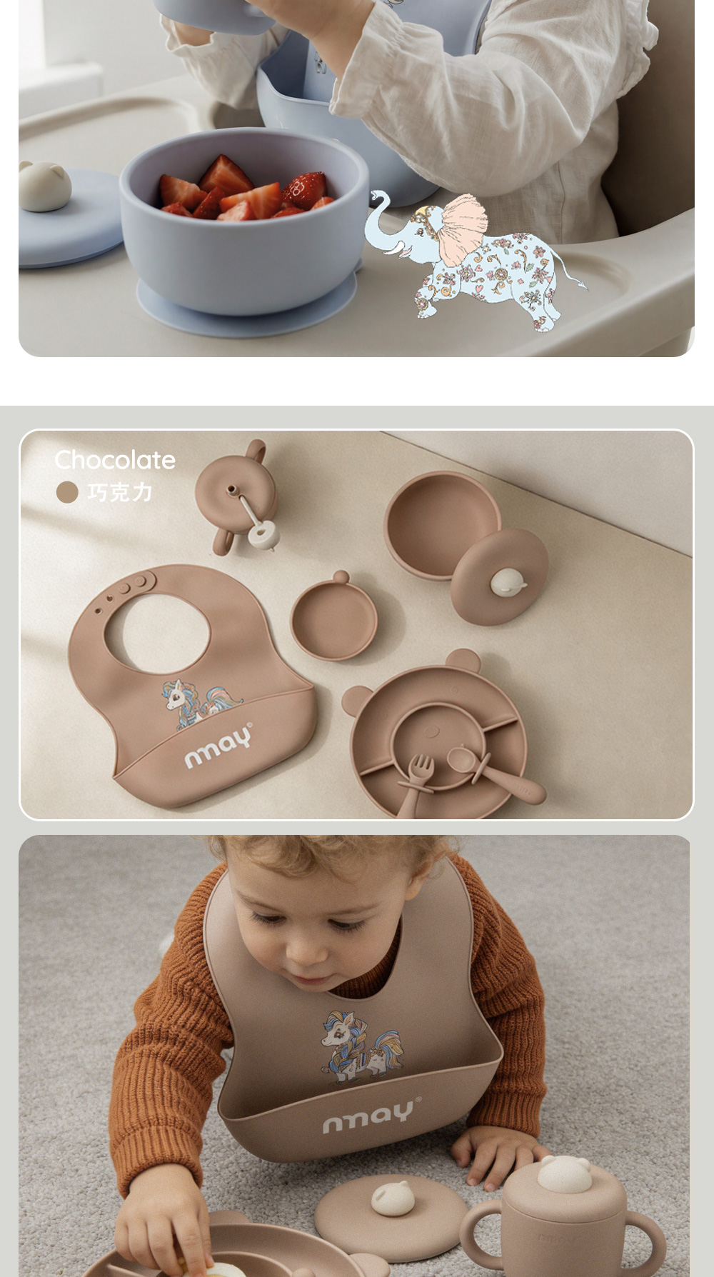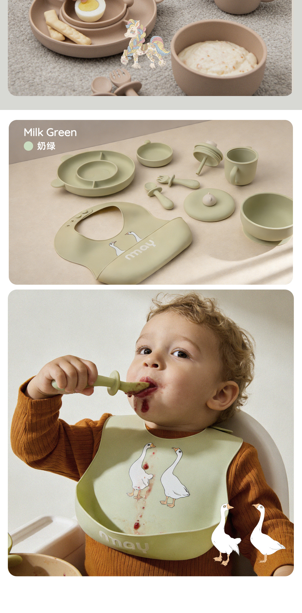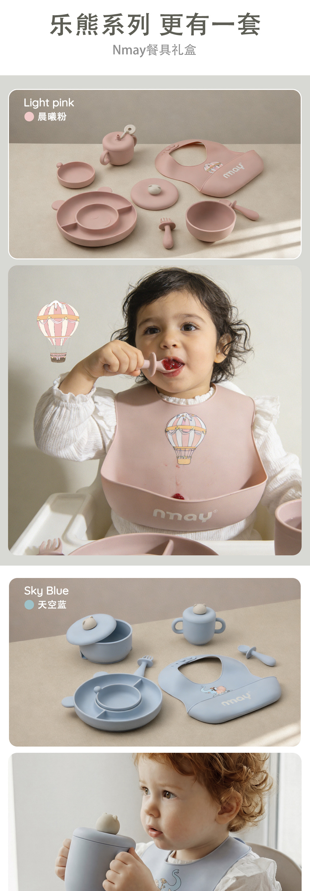nmay 乐熊系列 360°弯曲辅食勺三件套 勺子叉子儿童宝宝辅食6月+
