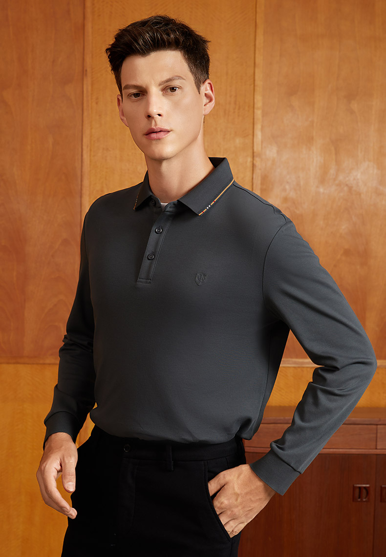 【含桑蚕丝】名盾长袖POLO衫男士秋季商务休闲中青年翻领t恤11591