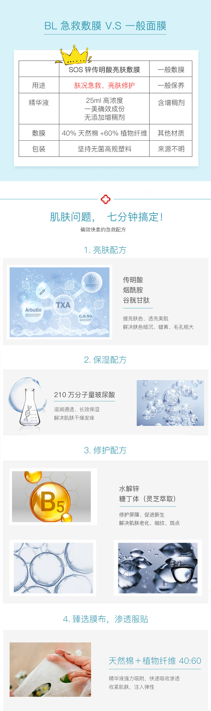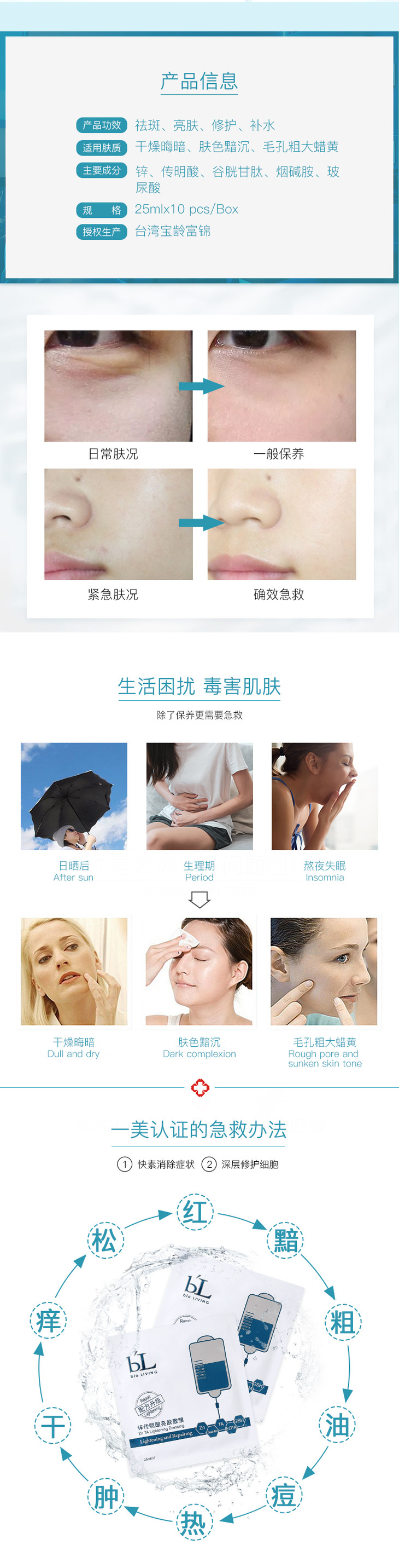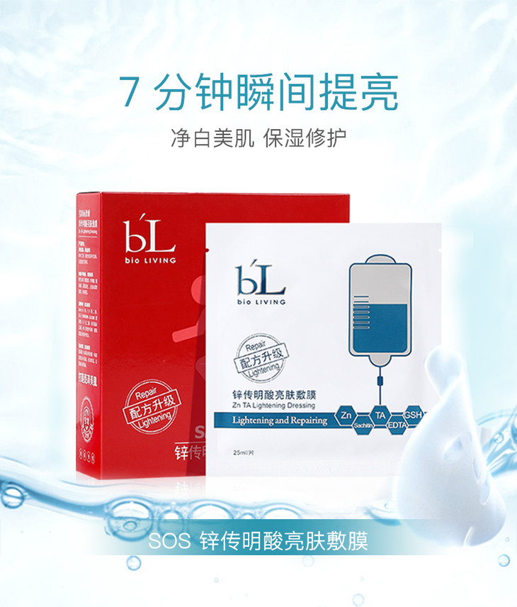 【宝龄】SOS锌传明酸亮肤面膜补水保湿修护敷膜10片