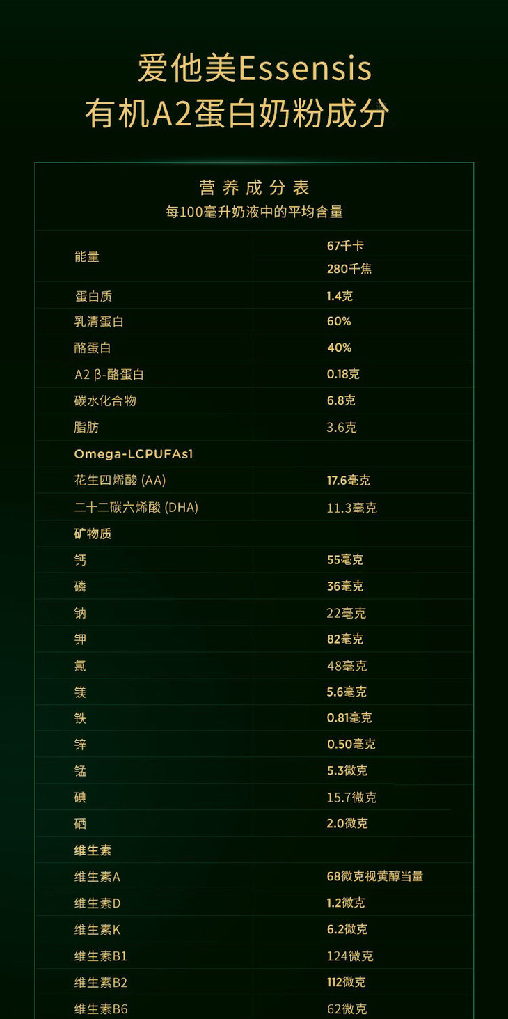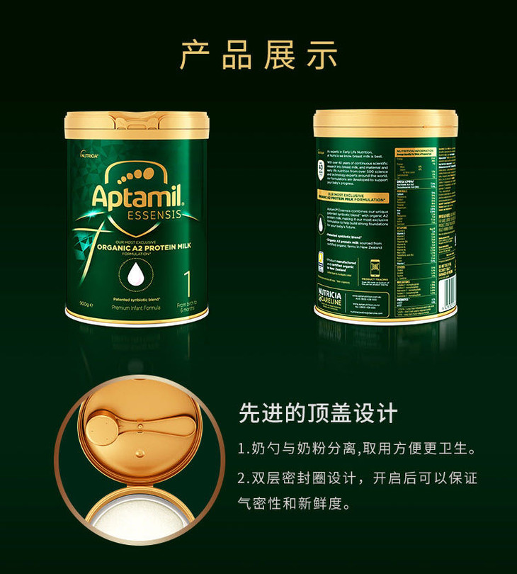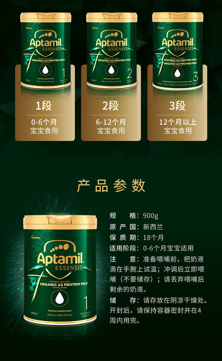 澳洲爱他美AptamiEssensis奇迹绿罐A2蛋白婴儿奶粉1段900g