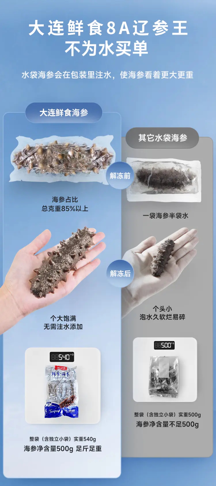 【滋补首选·大连8A鲜食辽参王】大连原产 8-10年海参 100斤出1斤 鲜食工艺 源头工厂 独立包装五折破价、史无前例(单斤到手299块8!)