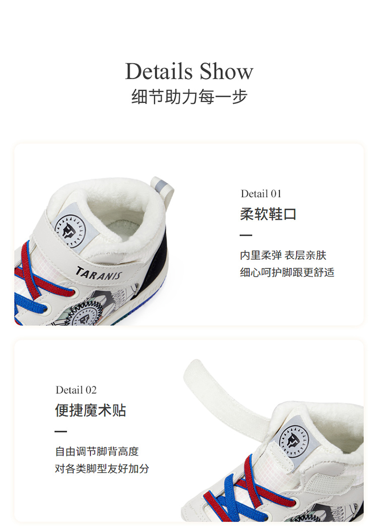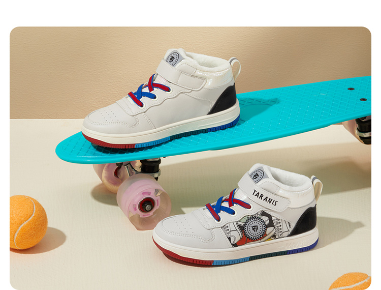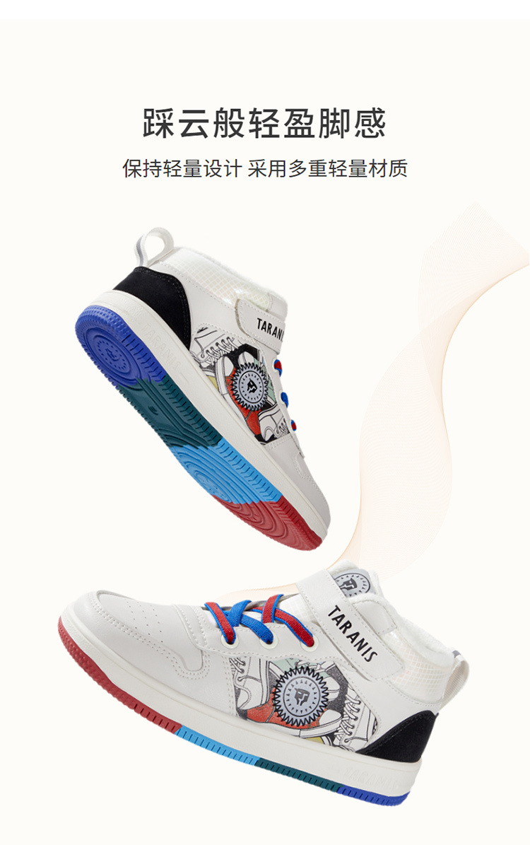 泰兰尼斯大童冬款加绒潮流个性涂鸦运动板鞋T02D2D2226