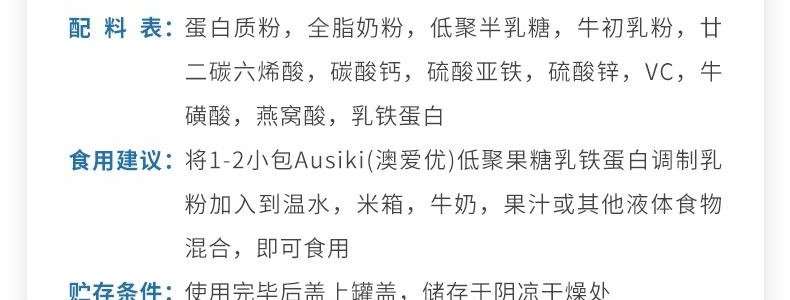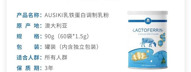 【一般贸易】澳洲 澳爱优(AUSIKI)乳铁蛋白调制乳粉 90g