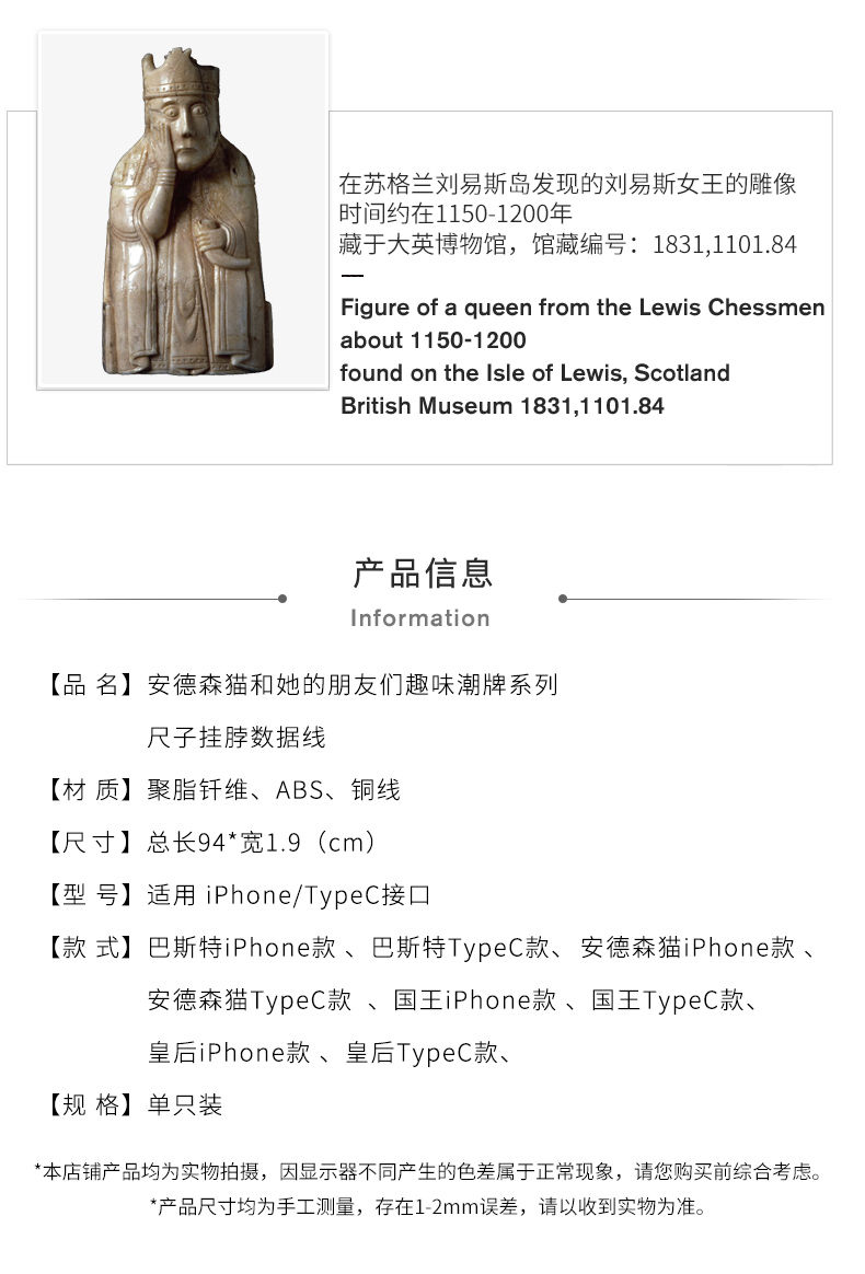 大英博物馆盖亚安德森猫巴斯特潮牌系列尺子挂脖数据线iphone接口