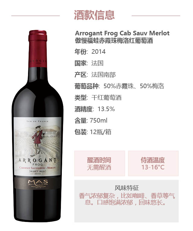 【整箱购买】傲慢福蛙-赤霞珠梅洛红葡萄酒 Arrogant Frog Cabernet Sauvignon - Merlot 6*750ml