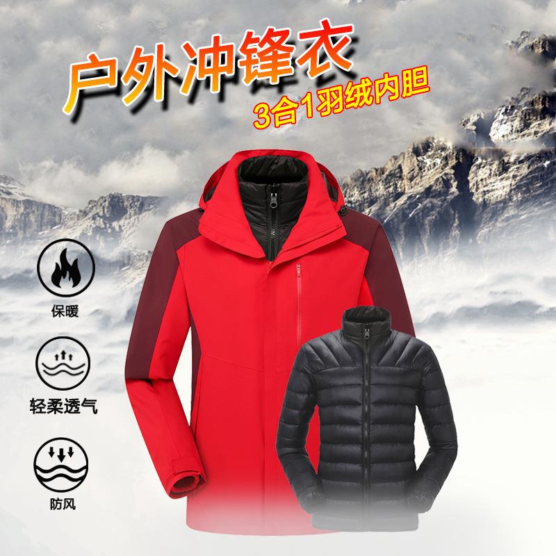 冬季户外新款羽绒内胆冲锋衣两件套可拆卸情侣登山服