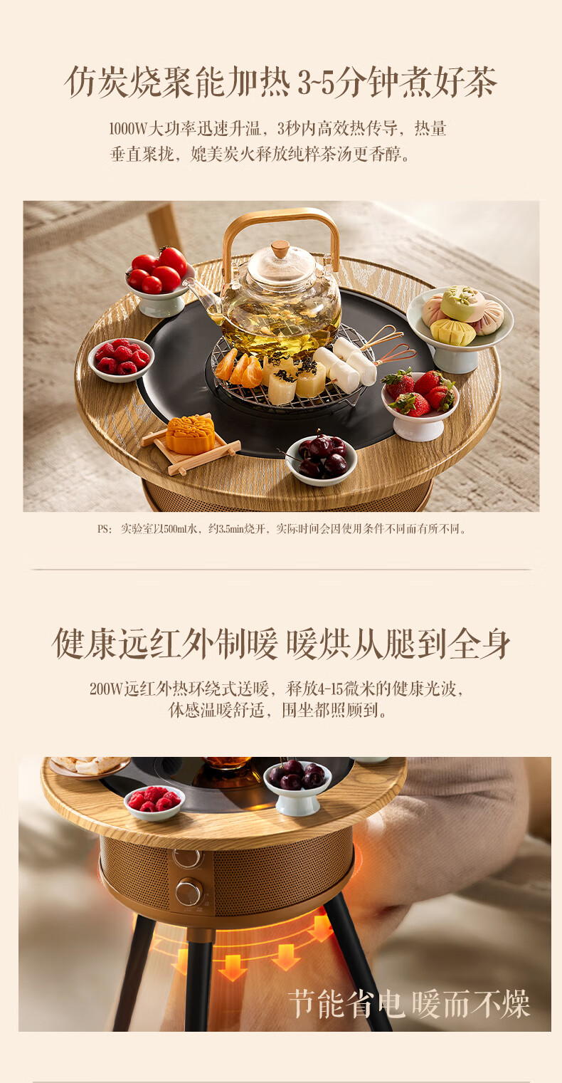 艾美特(AIRMATE)【围炉煮茶】取暖器电暖器小太阳远红外加热电暖气片家用电暖桌电陶炉烧水煮茶火锅炉赠茶壶 AIR13