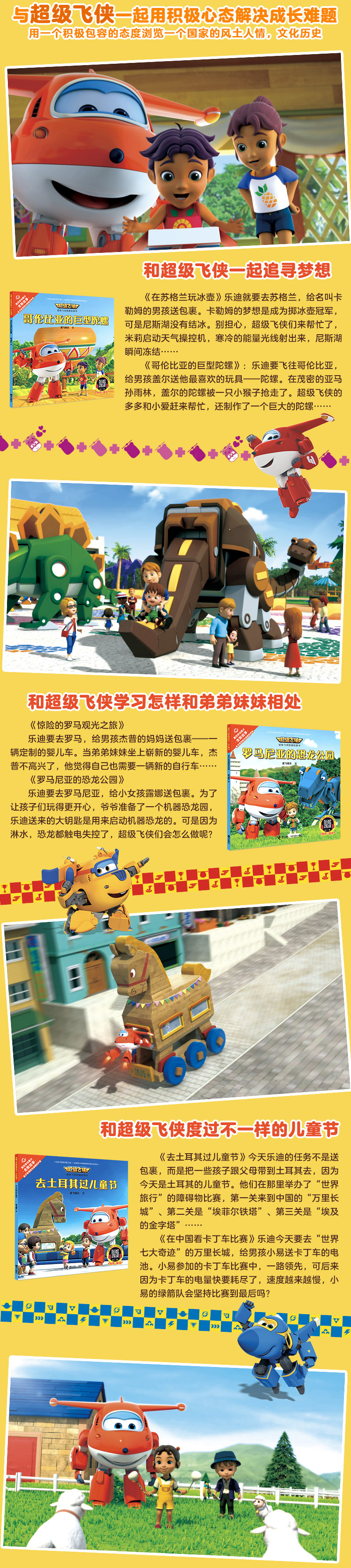 “超级飞侠图画故事书”是一套从儿童心理出发,旨在给予孩子积极正向的心理引导,在潜移默化中塑造孩子美好品格,做好情商培养的系列图画故事书。全系列故事中包含家庭关系、自信培养、直面挑战、伙伴合作、人际交往、探索认知等多种元素,将孩子日常所面临的种种问题都囊括其中。让家长在发现孩子问题时,都能从中找到相应的解决和指导方法。