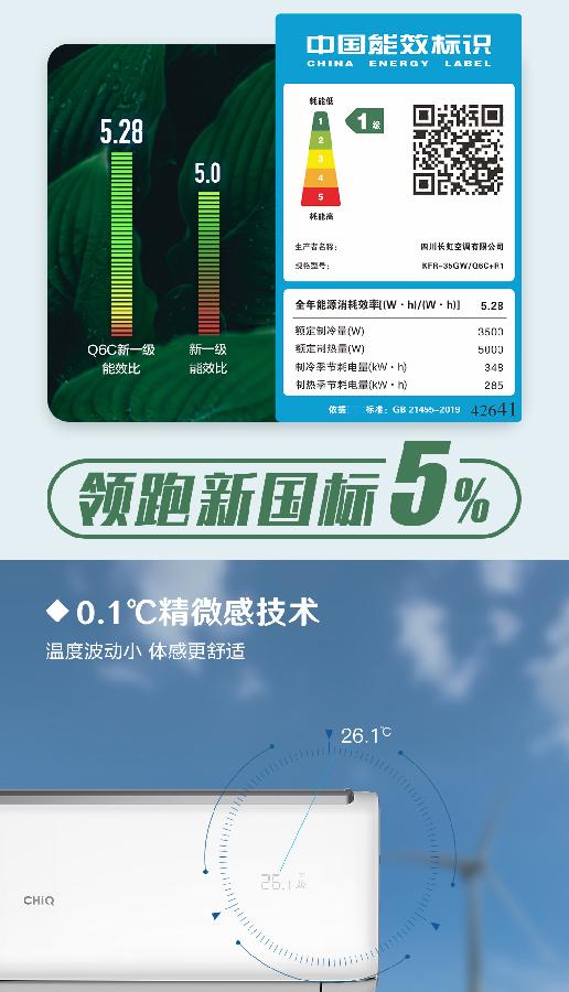 广电优选 长虹KFR-26GW/Q6C+R1 大1P变频一级能效空调