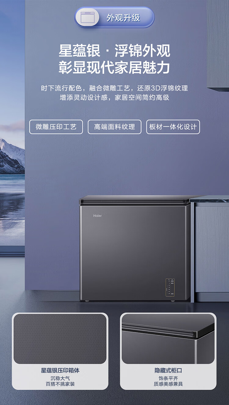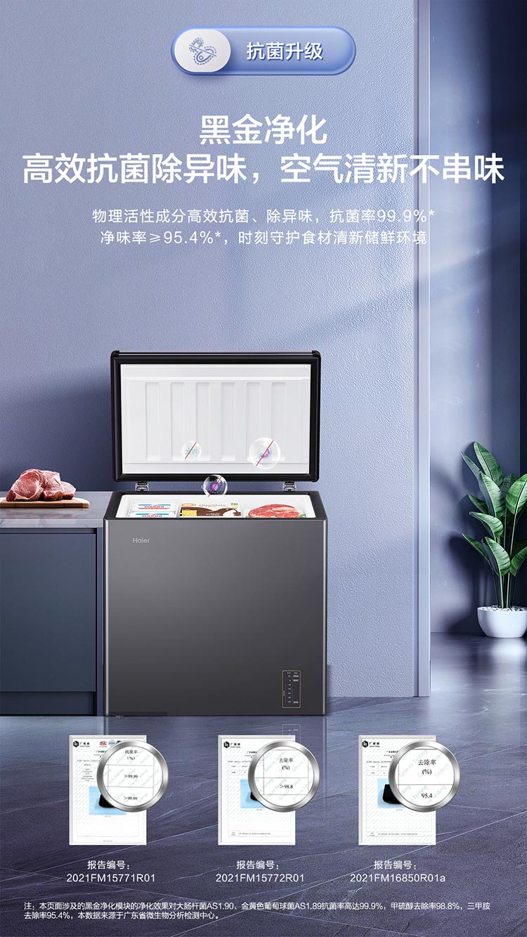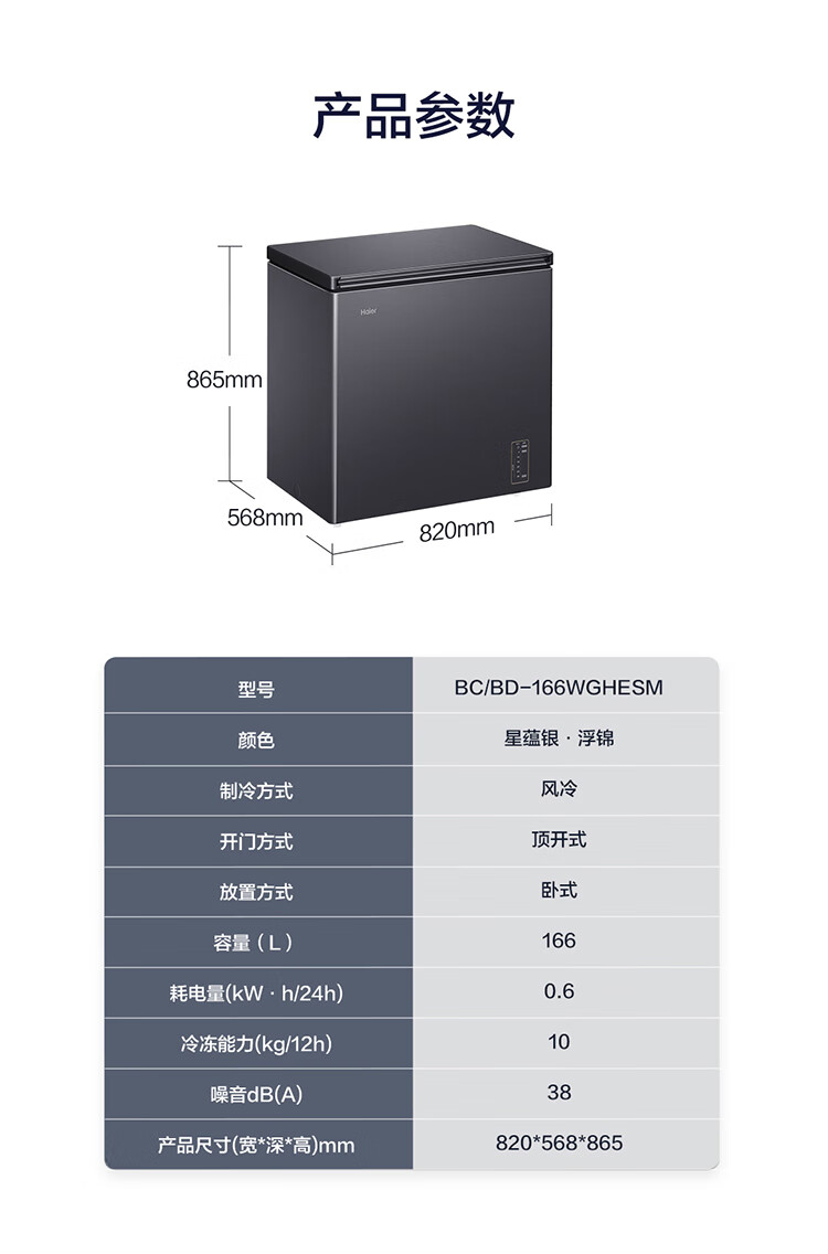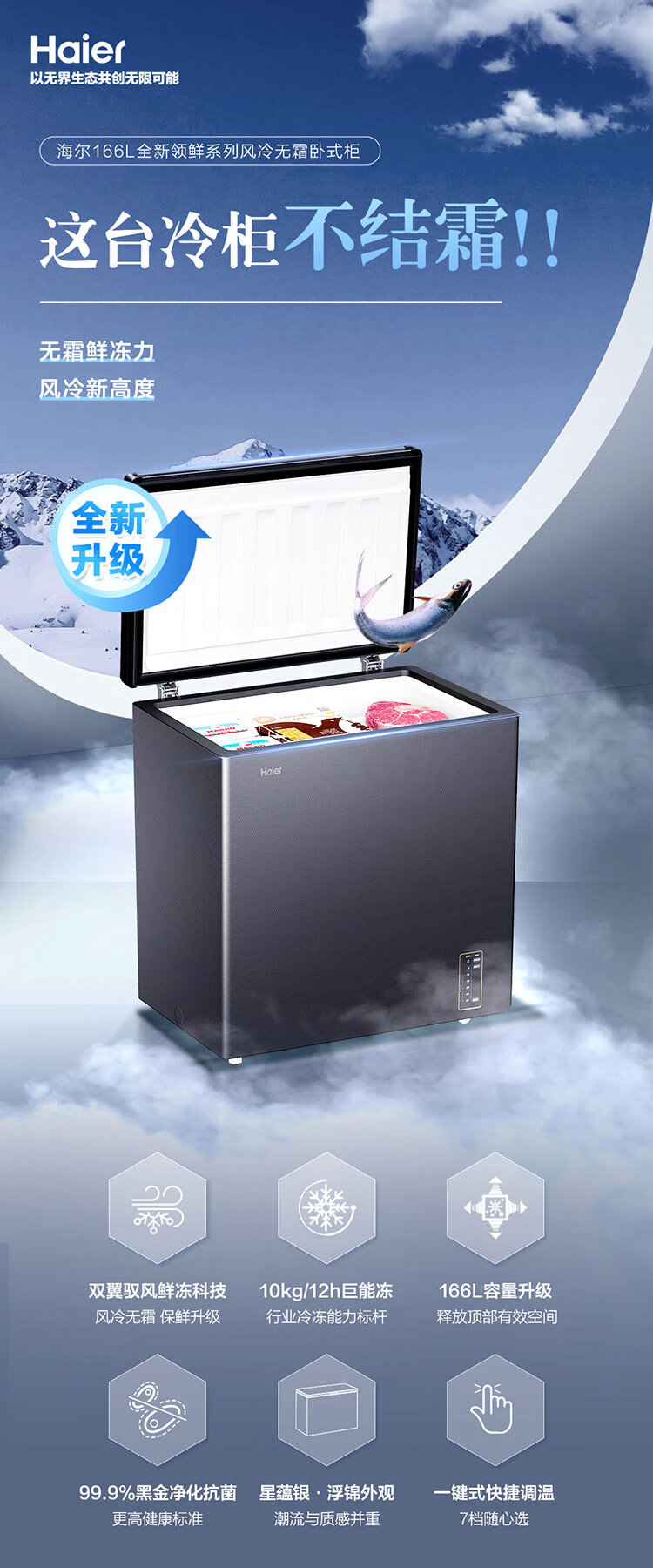 海尔166L全新领鲜系列风冷无霜卧式冰柜BC/BD-166WGHESM