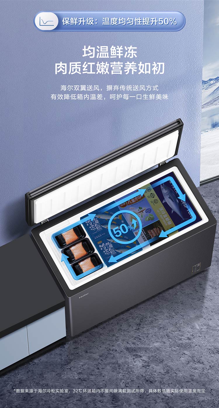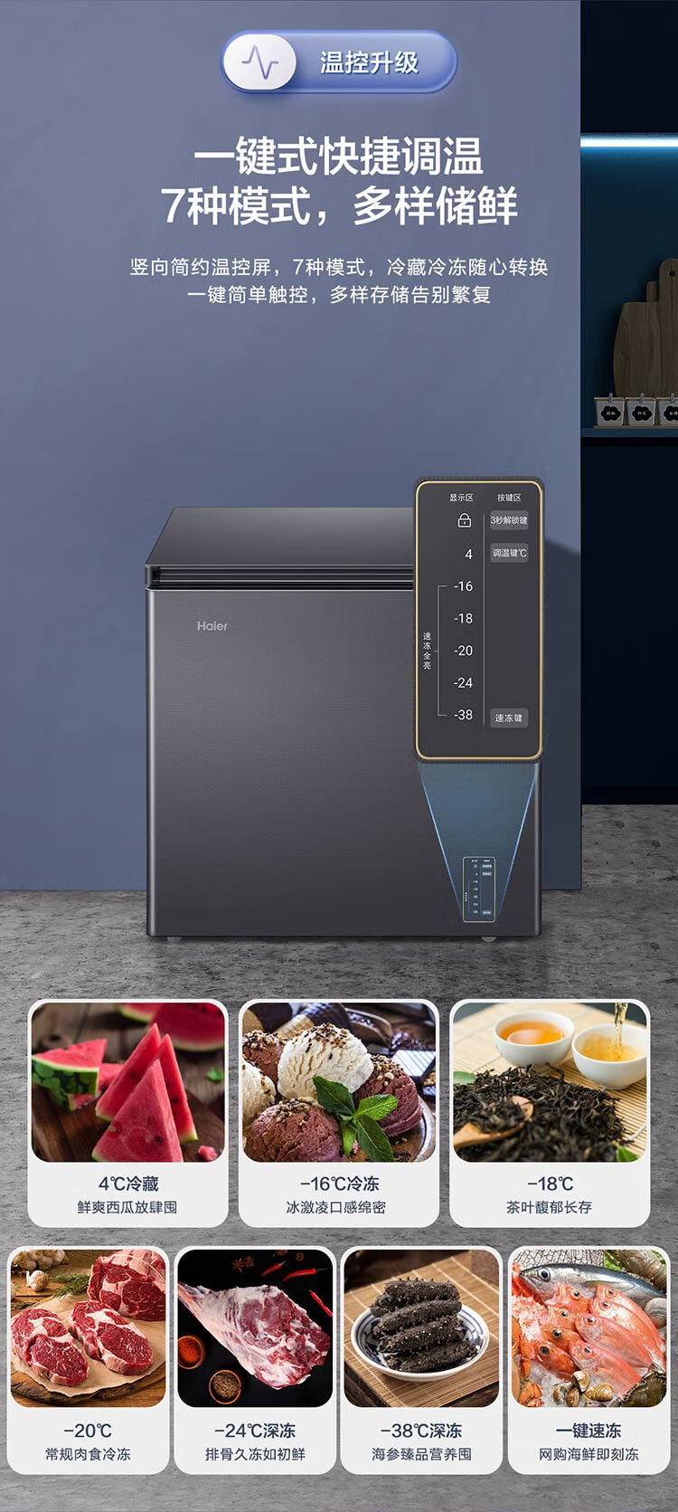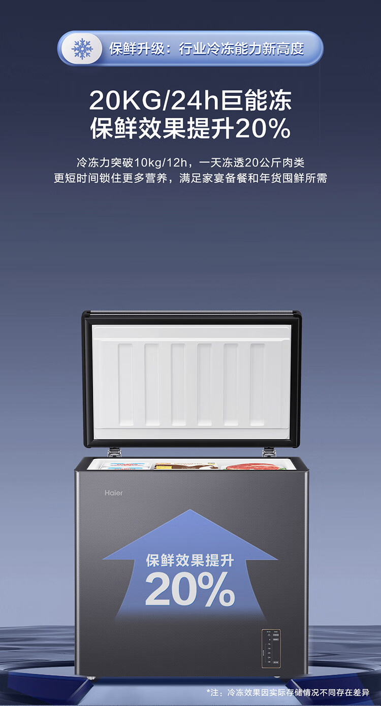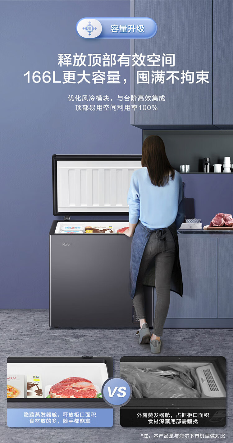 海尔166L全新领鲜系列风冷无霜卧式冰柜BC/BD-166WGHESM