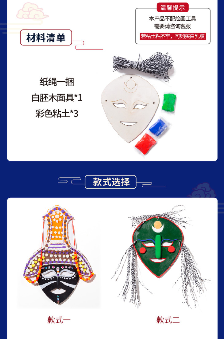 【美可—语言区】藏戏面具 中国风儿童涂色面具脸谱画幼儿园儿童diy手工自制材料包