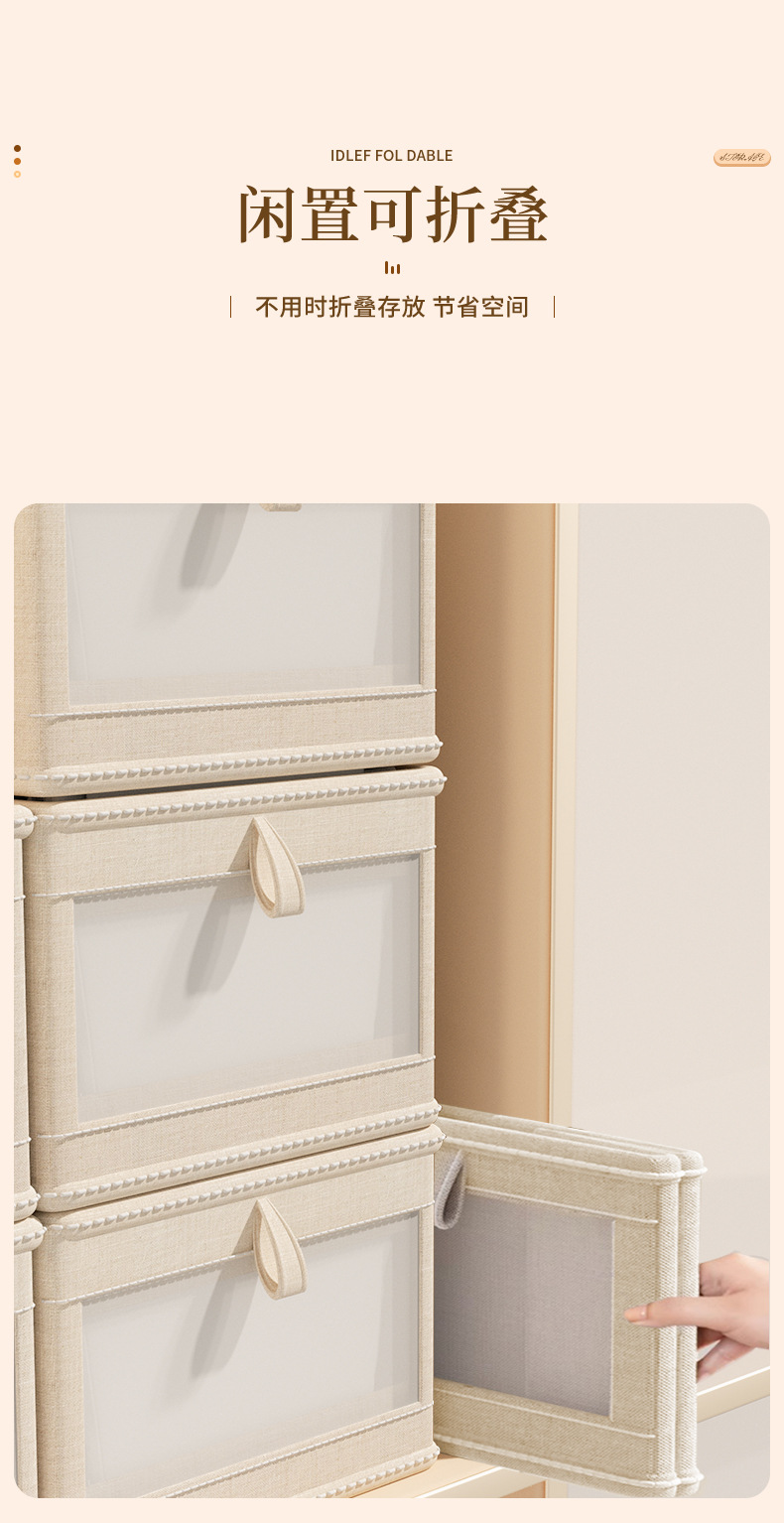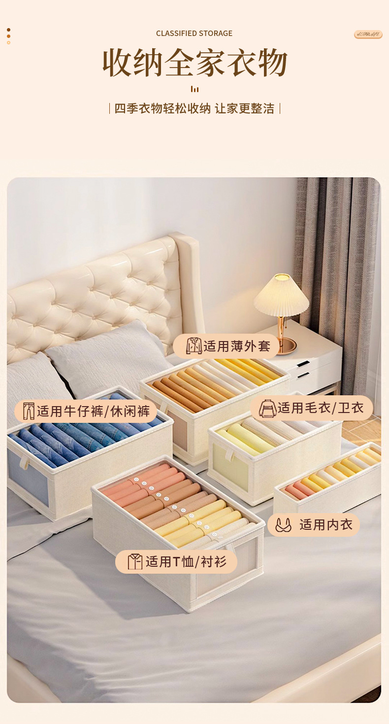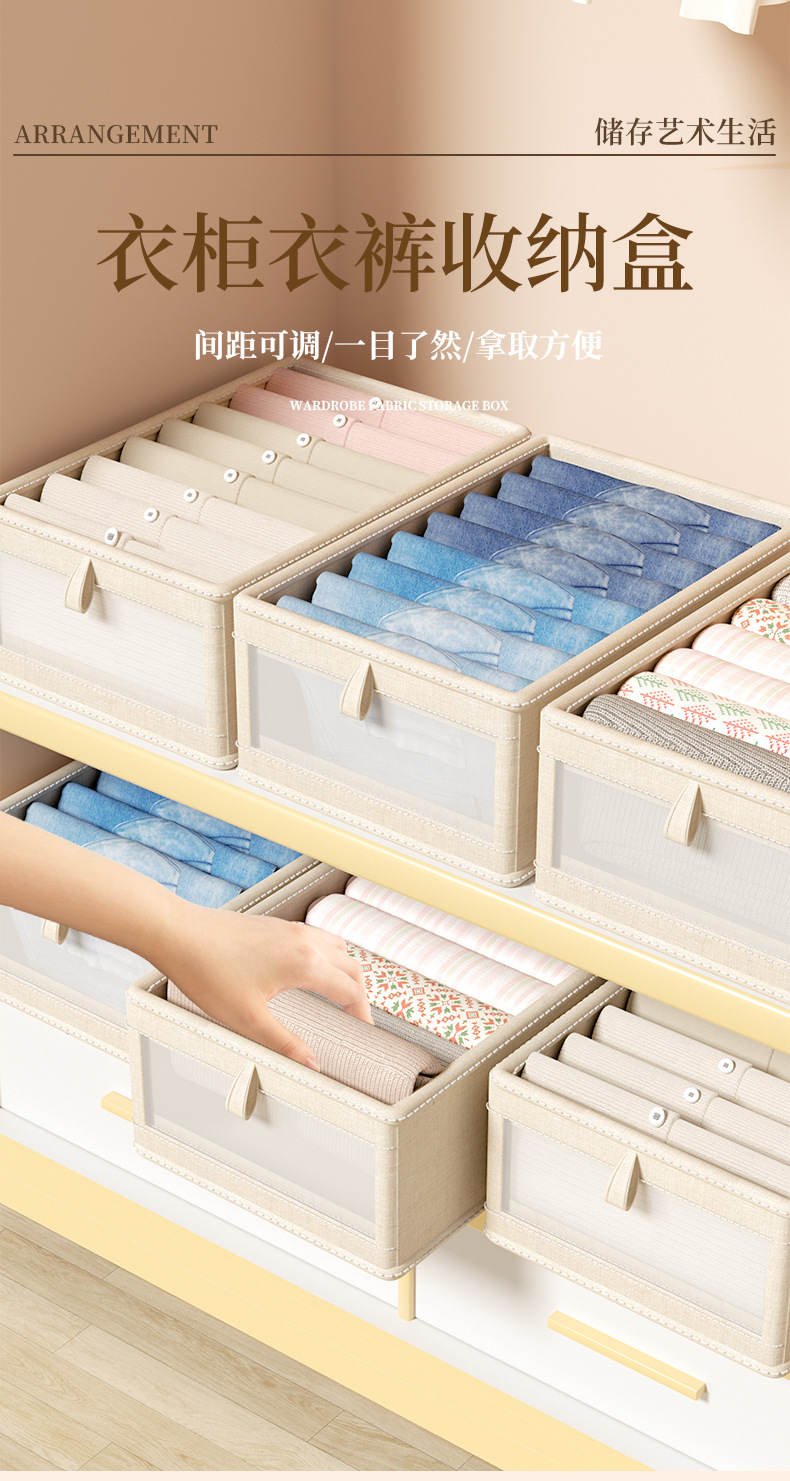 一秒找衣物【一拉一取!方便快捷】四季衣物轻松收纳,日式棉麻衣服收纳盒布艺可折叠收纳箱家用衣柜衣物收纳整理盒。rb