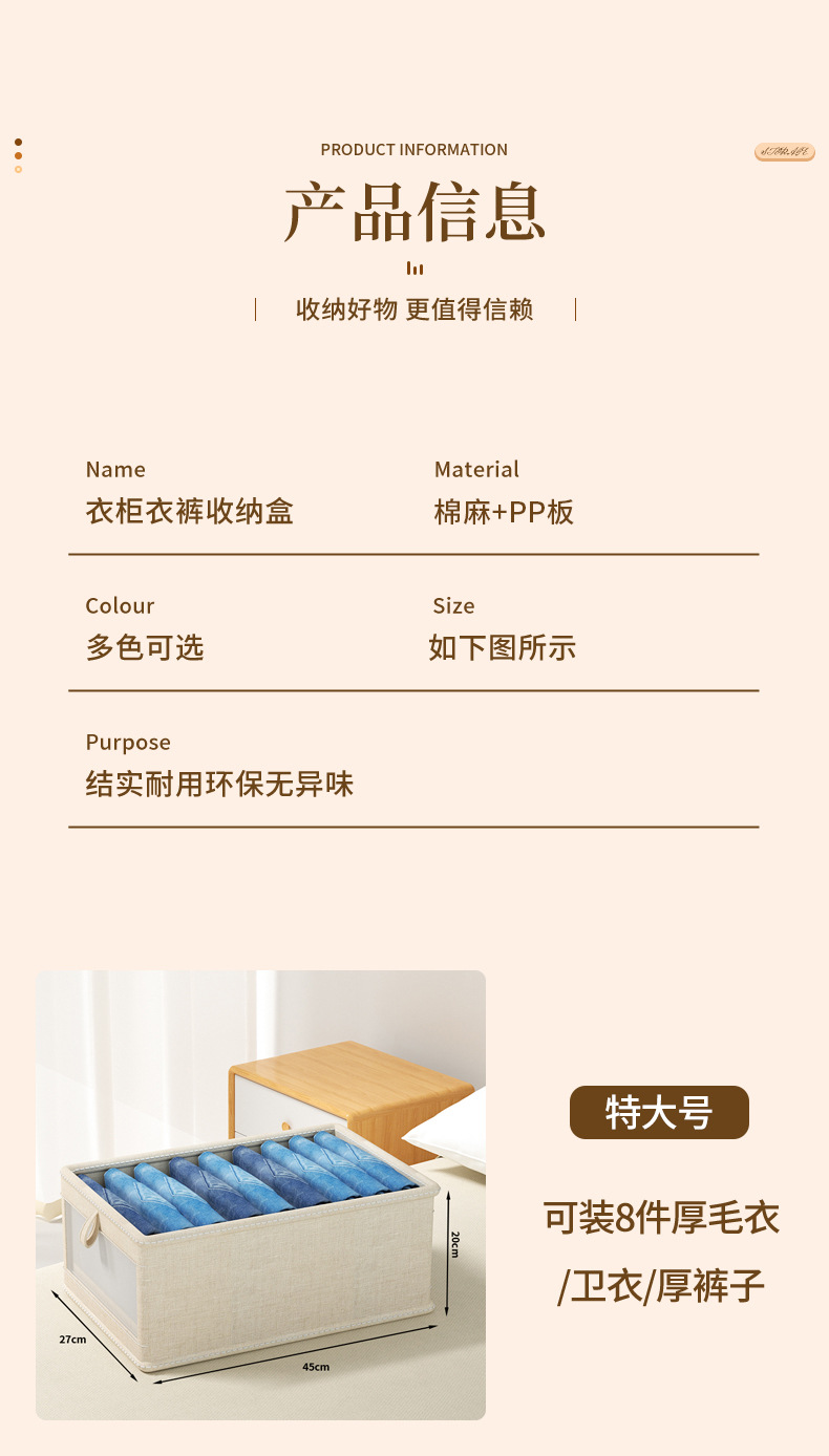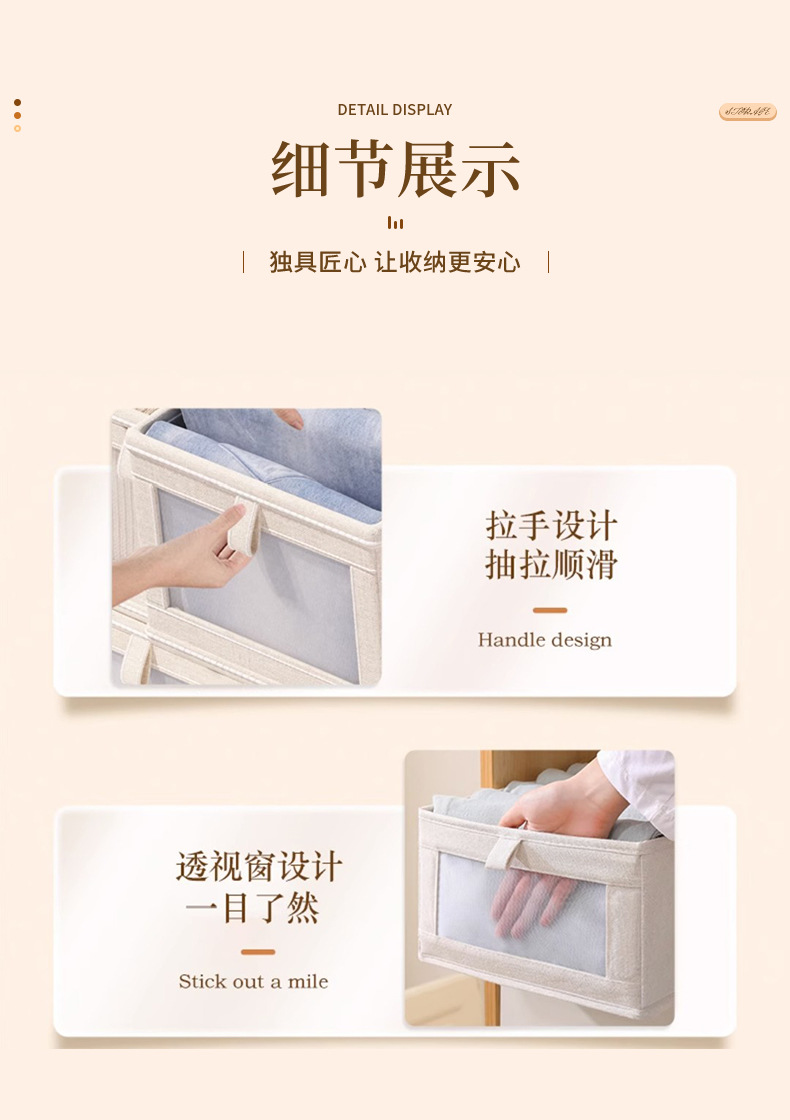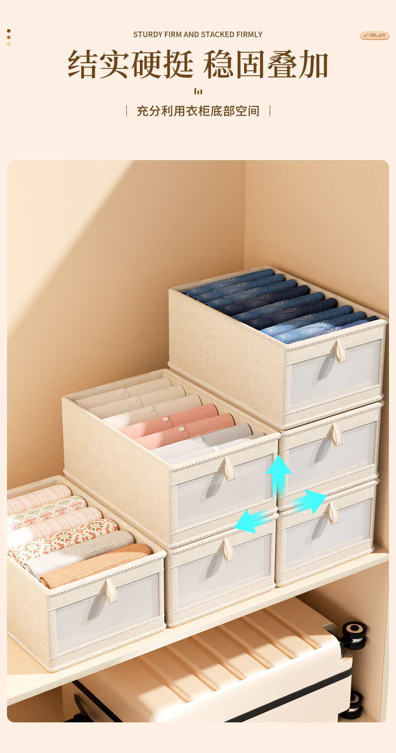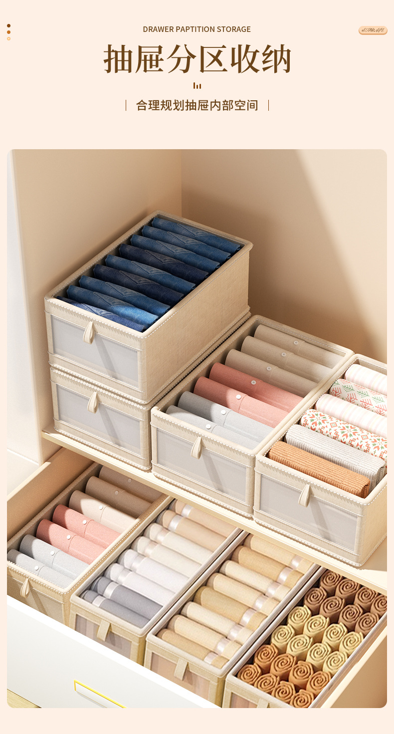 一秒找衣物【一拉一取!方便快捷】四季衣物轻松收纳,日式棉麻衣服收纳盒布艺可折叠收纳箱家用衣柜衣物收纳整理盒。rb