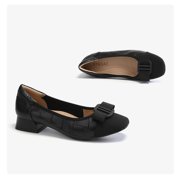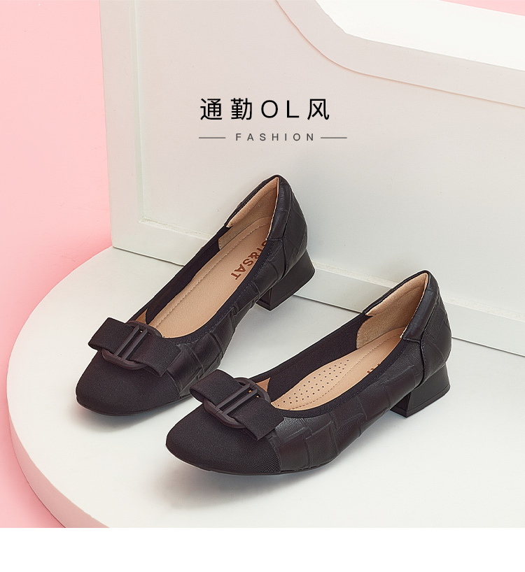 【小方镜系列】星期六26春新款优雅风缎面晶扣中低跟单鞋SSE1111030/SSE1111035