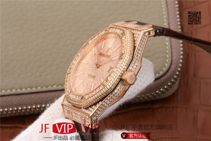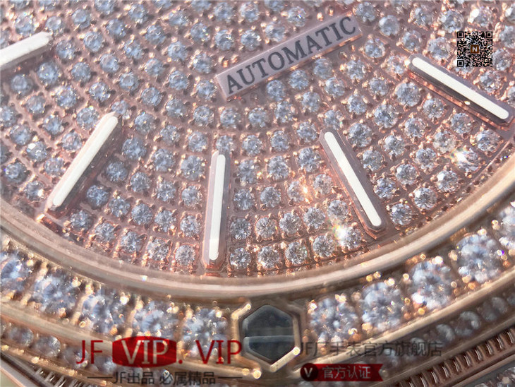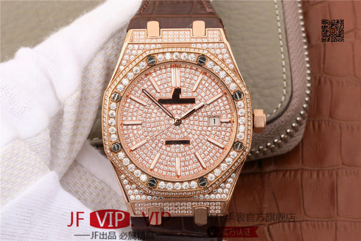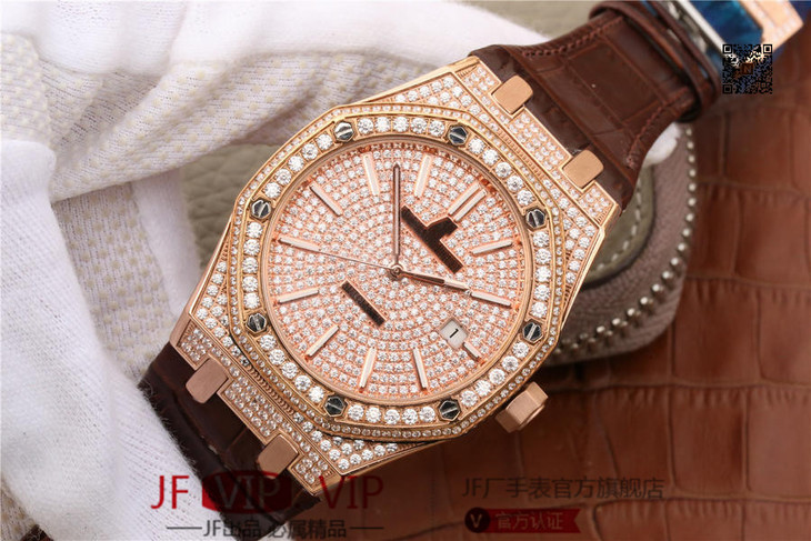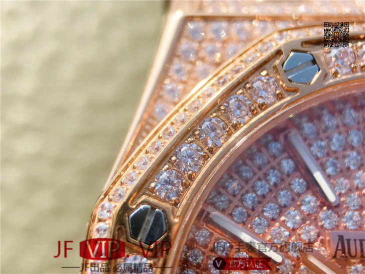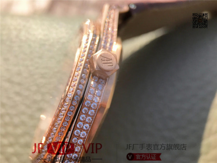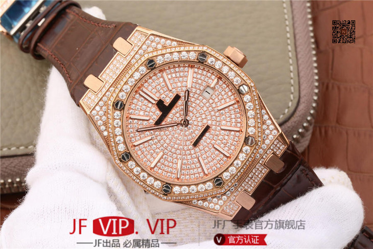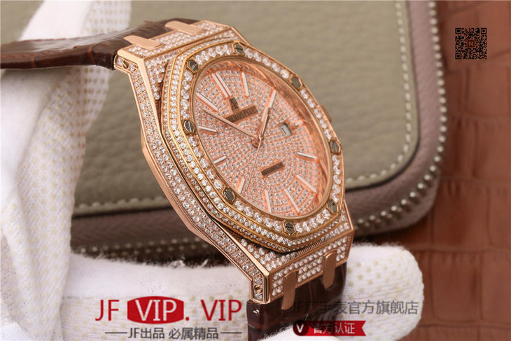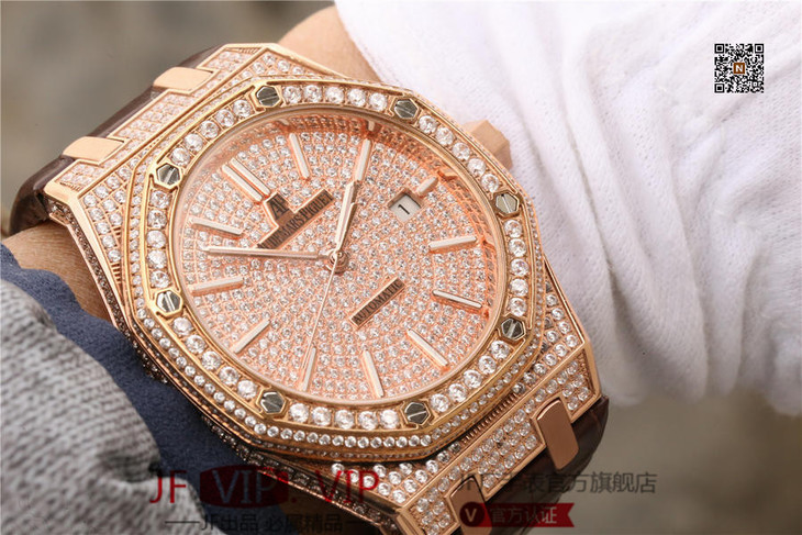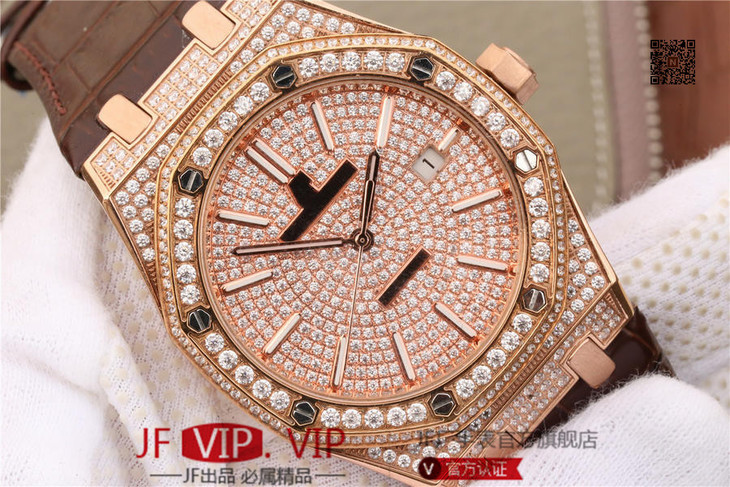 爱彼皇家橡树15400满天星系列 全表壳镶满钻 搭载9015改原装cal.3120超薄自动机芯 意大利牛皮表带 镶钻原装表扣