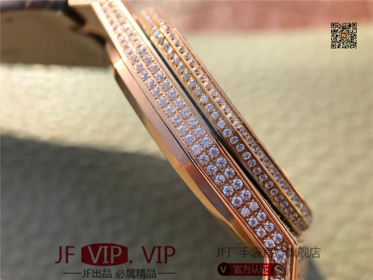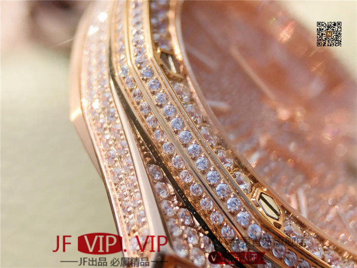 爱彼皇家橡树15400满天星系列 全表壳镶满钻 搭载9015改原装cal.3120超薄自动机芯 意大利牛皮表带 镶钻原装表扣 耗时一年技术改进 造出目前市面最薄满钻机械表 尺寸41mm*10mm