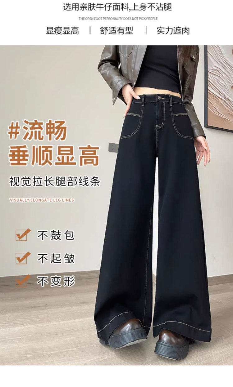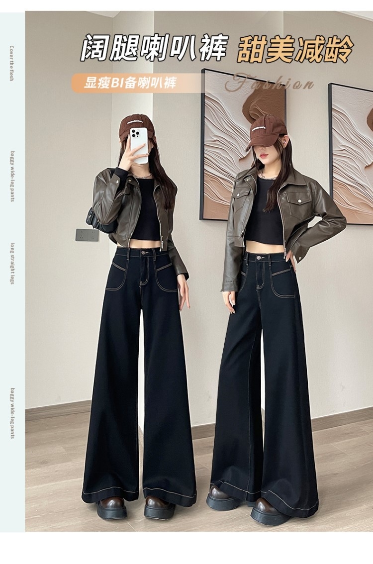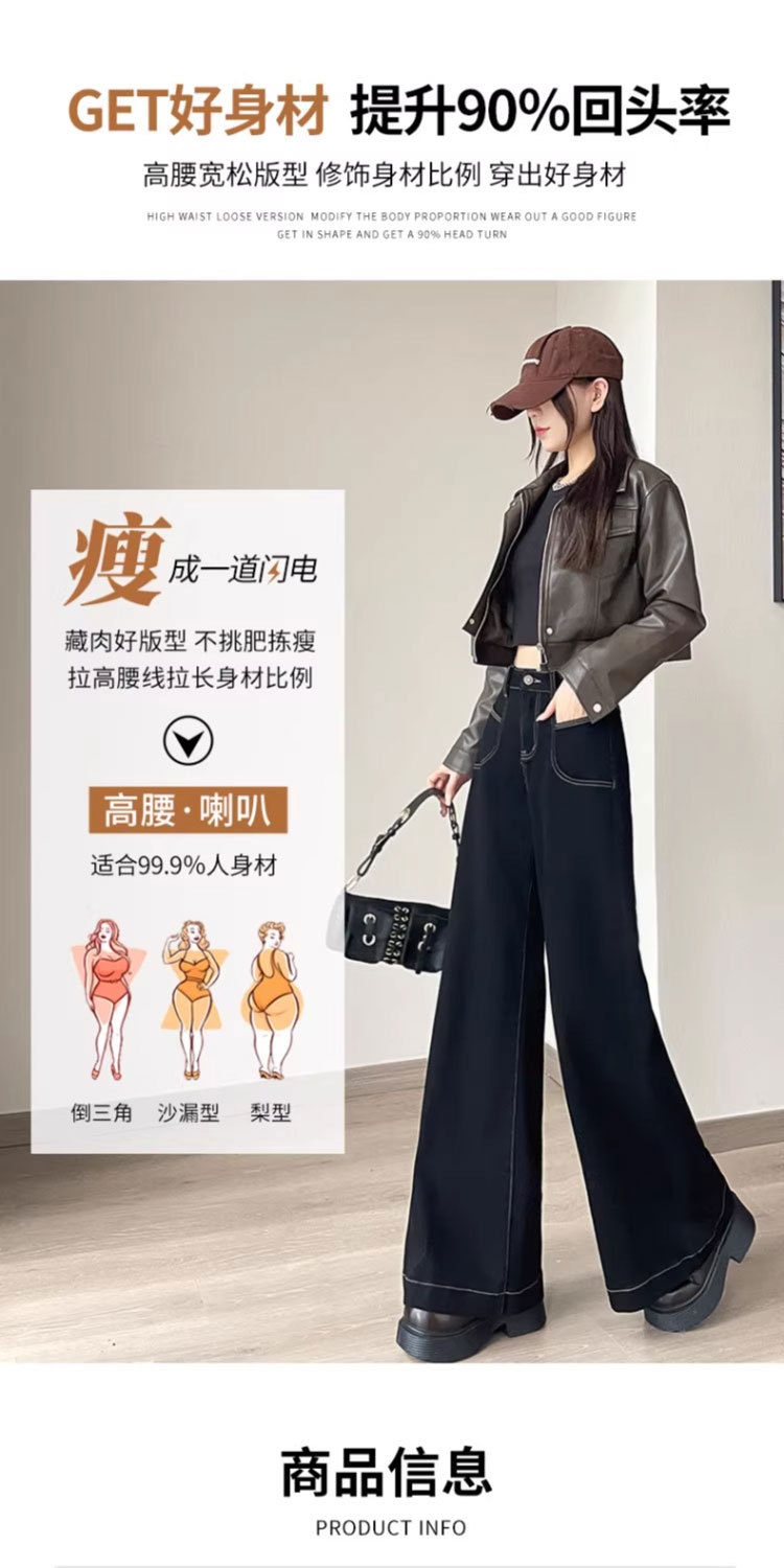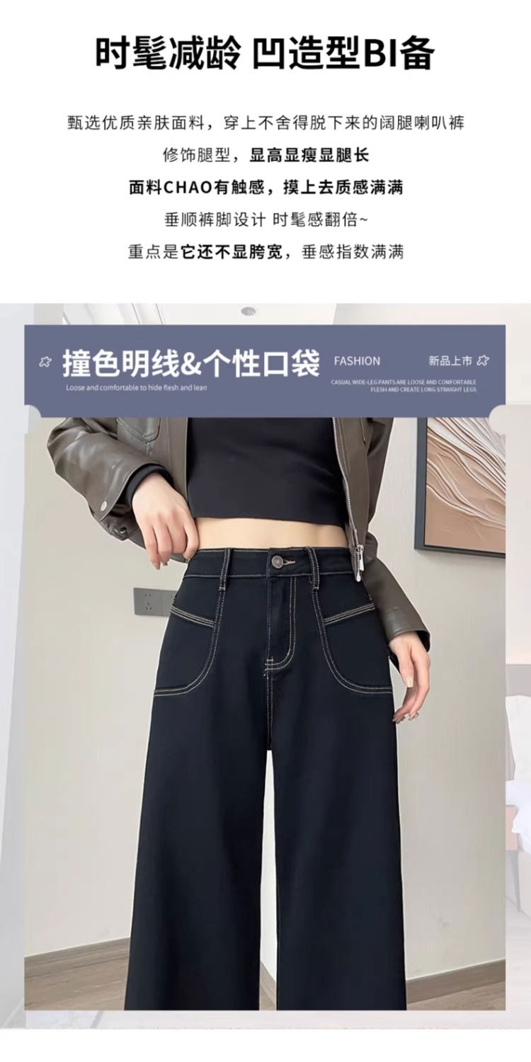 【GZ】无忧购 时尚高腰黑色阔腿牛仔裤女百搭新款宽松大喇叭直筒裤104(截单后3-5天发货)