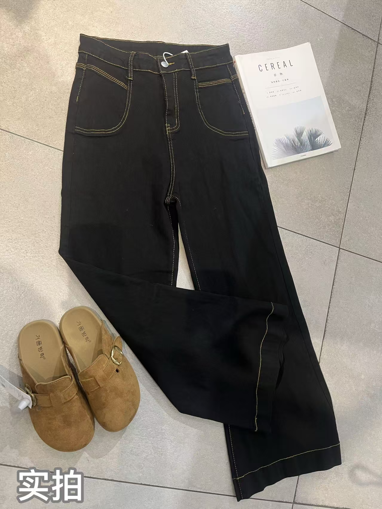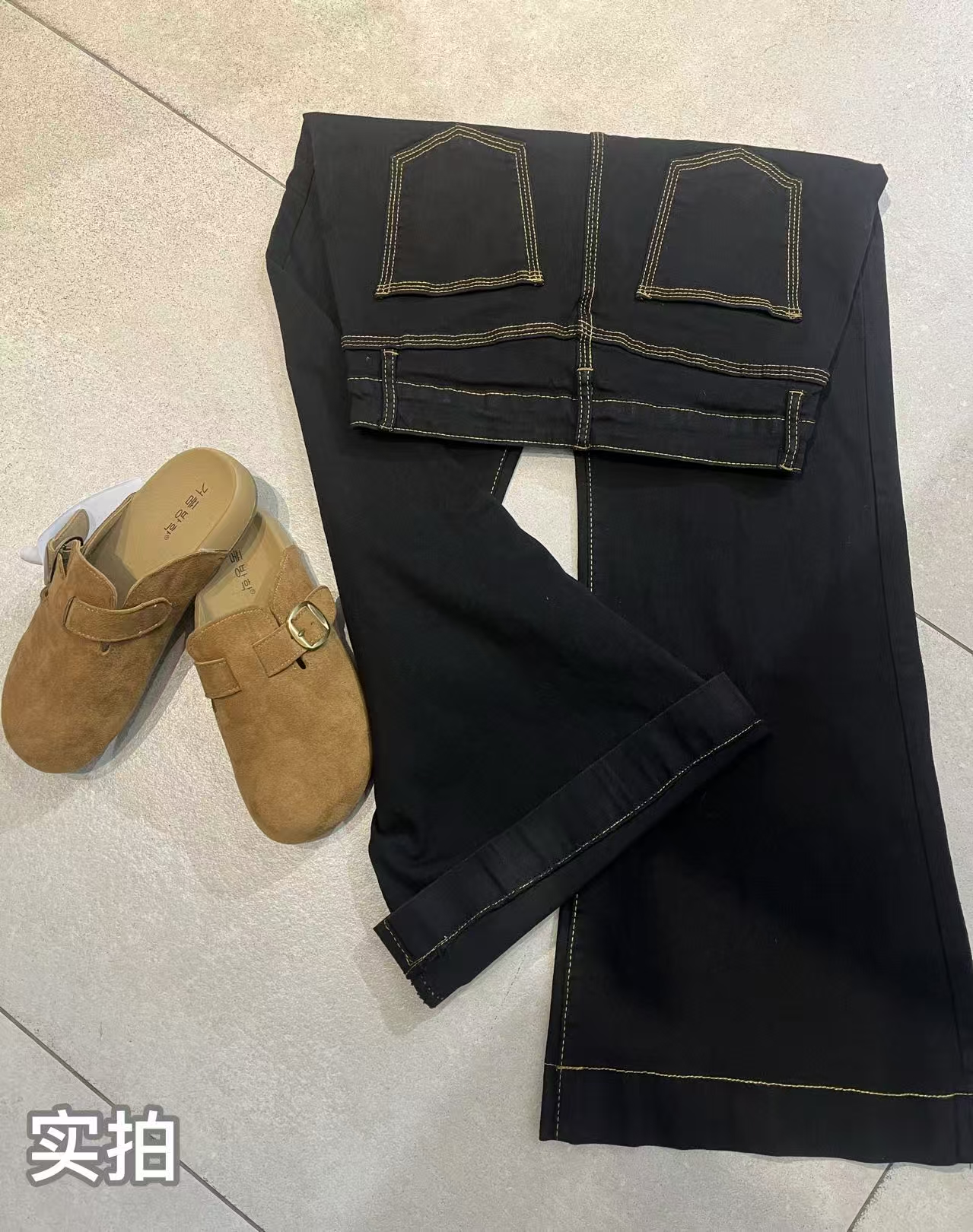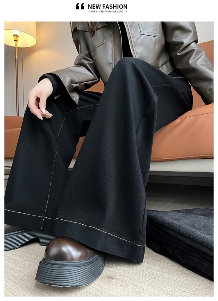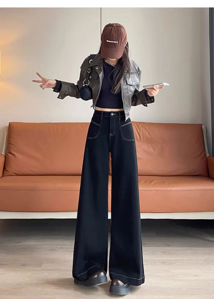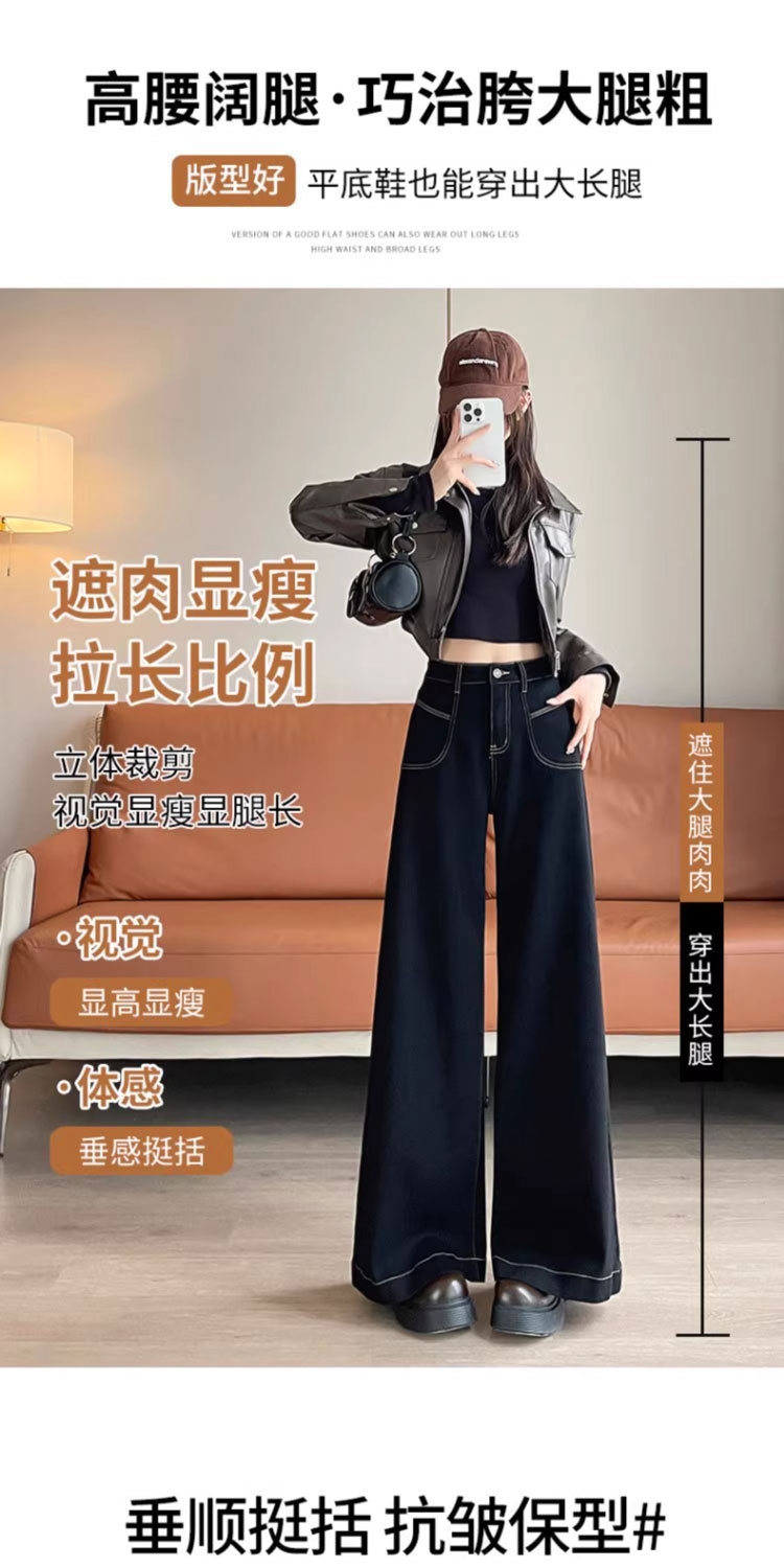 【GZ】无忧购 时尚高腰黑色阔腿牛仔裤女百搭新款宽松大喇叭直筒裤104(截单后3-5天发货)