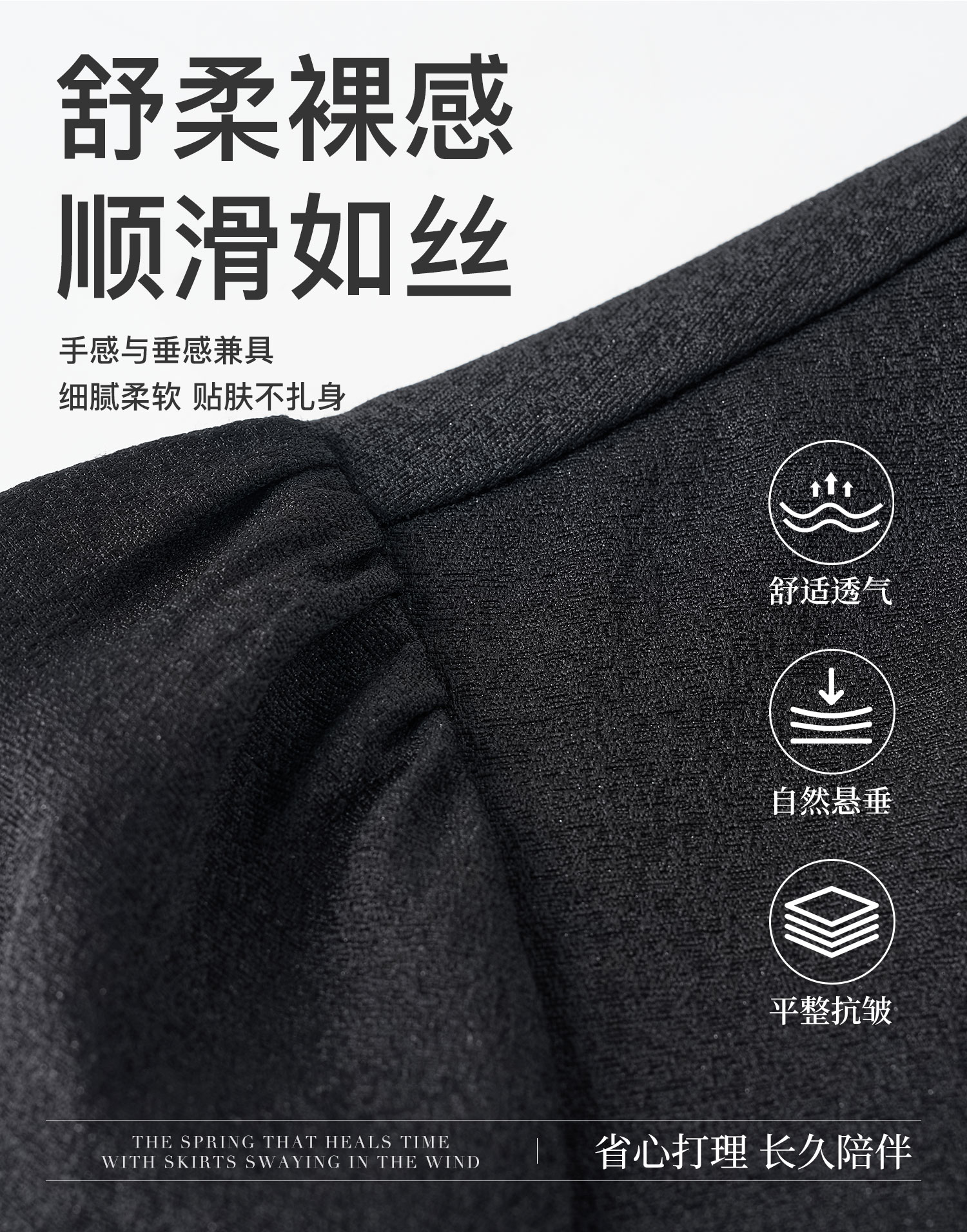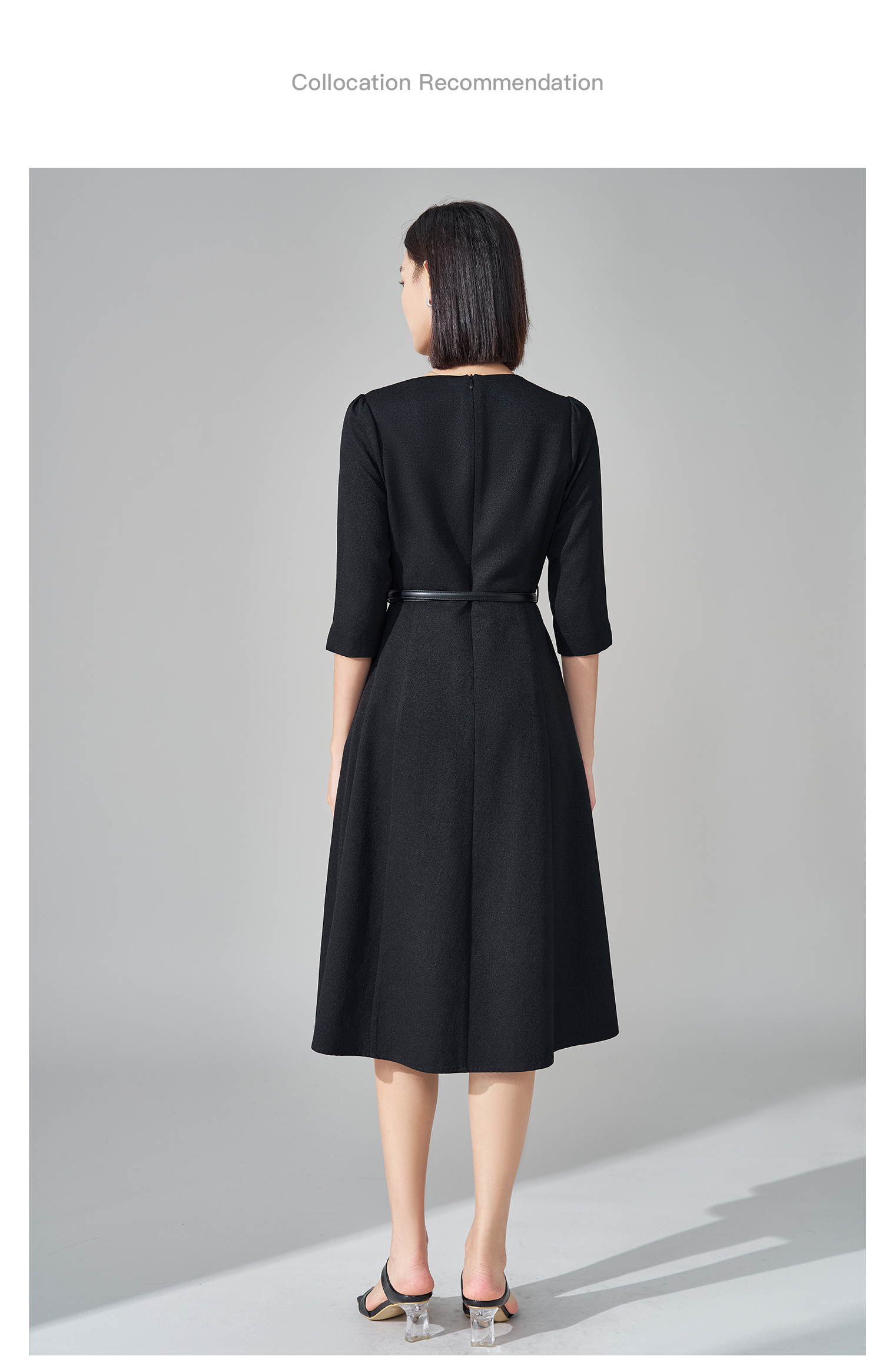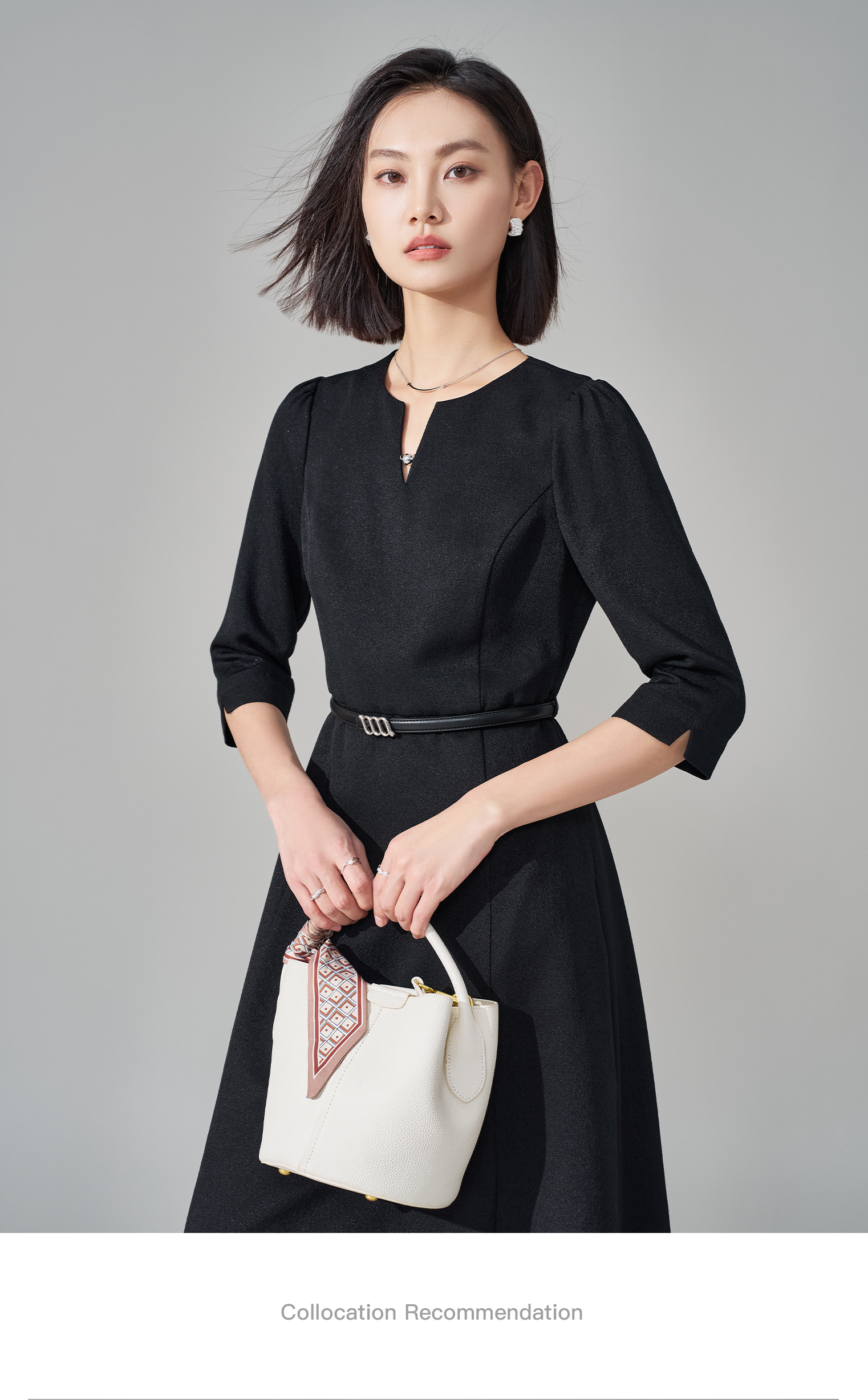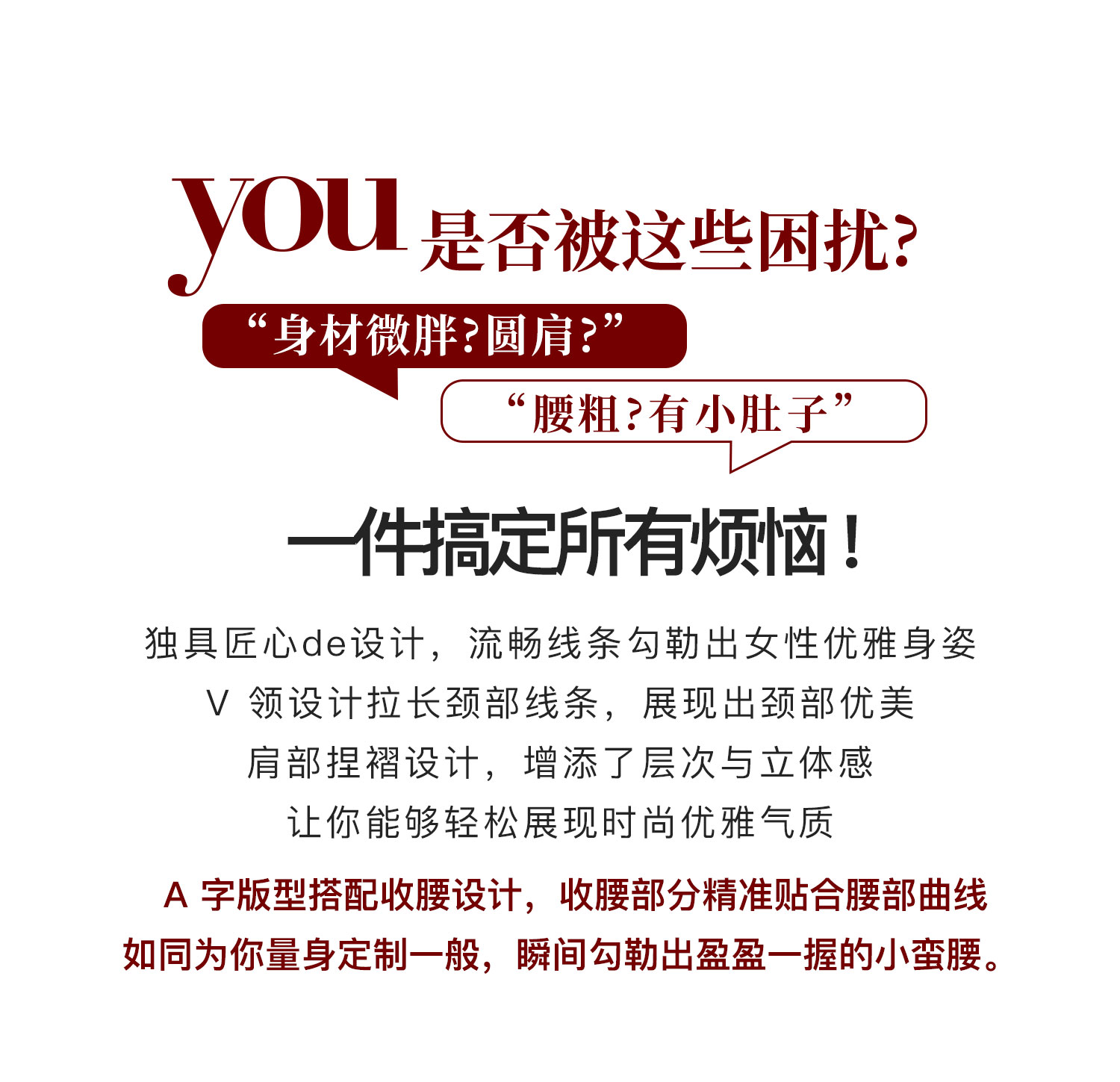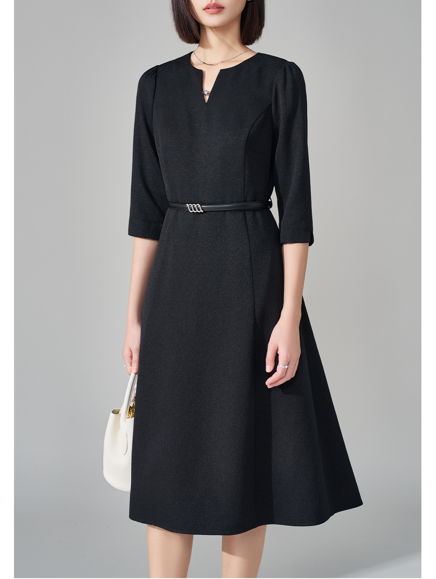 剩S/M/L/XL 米思阳2026春季气质V领七分袖小黑裙收腰显瘦A字连衣裙5058