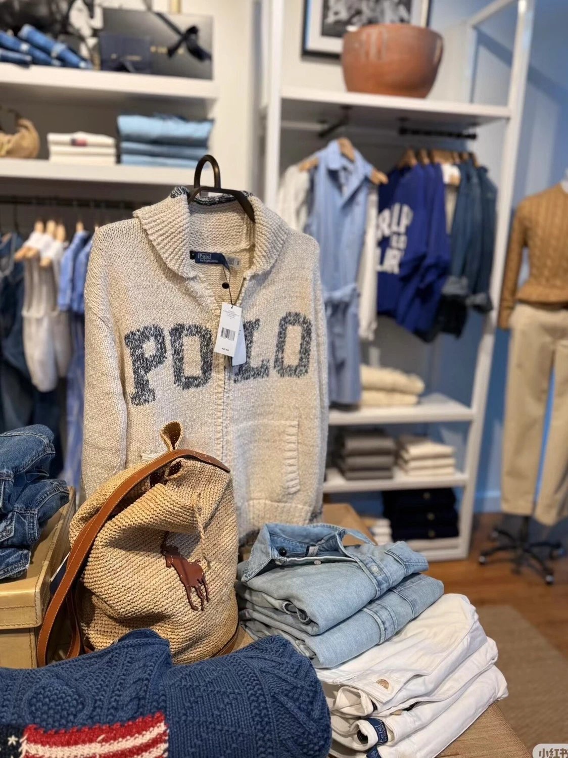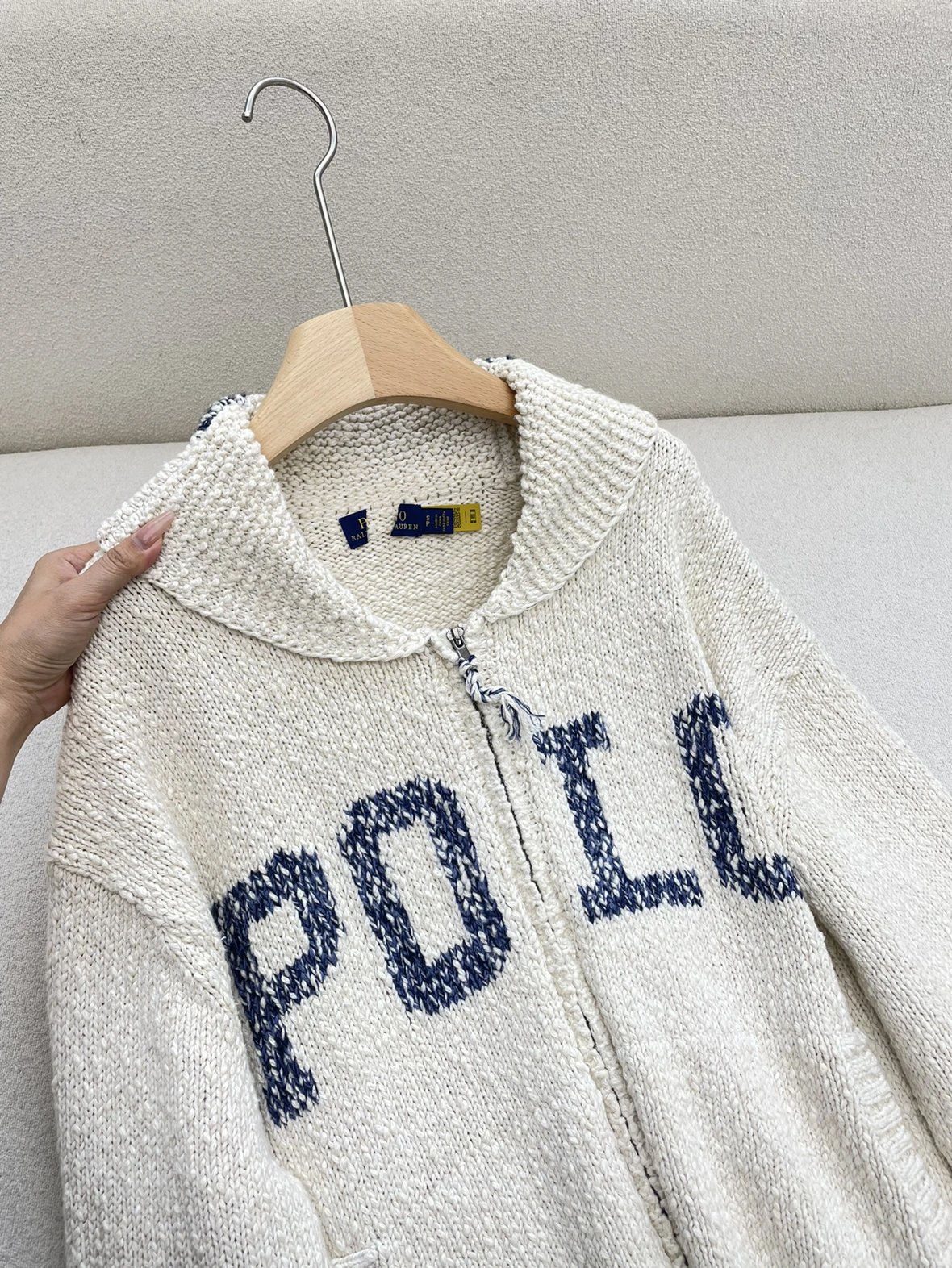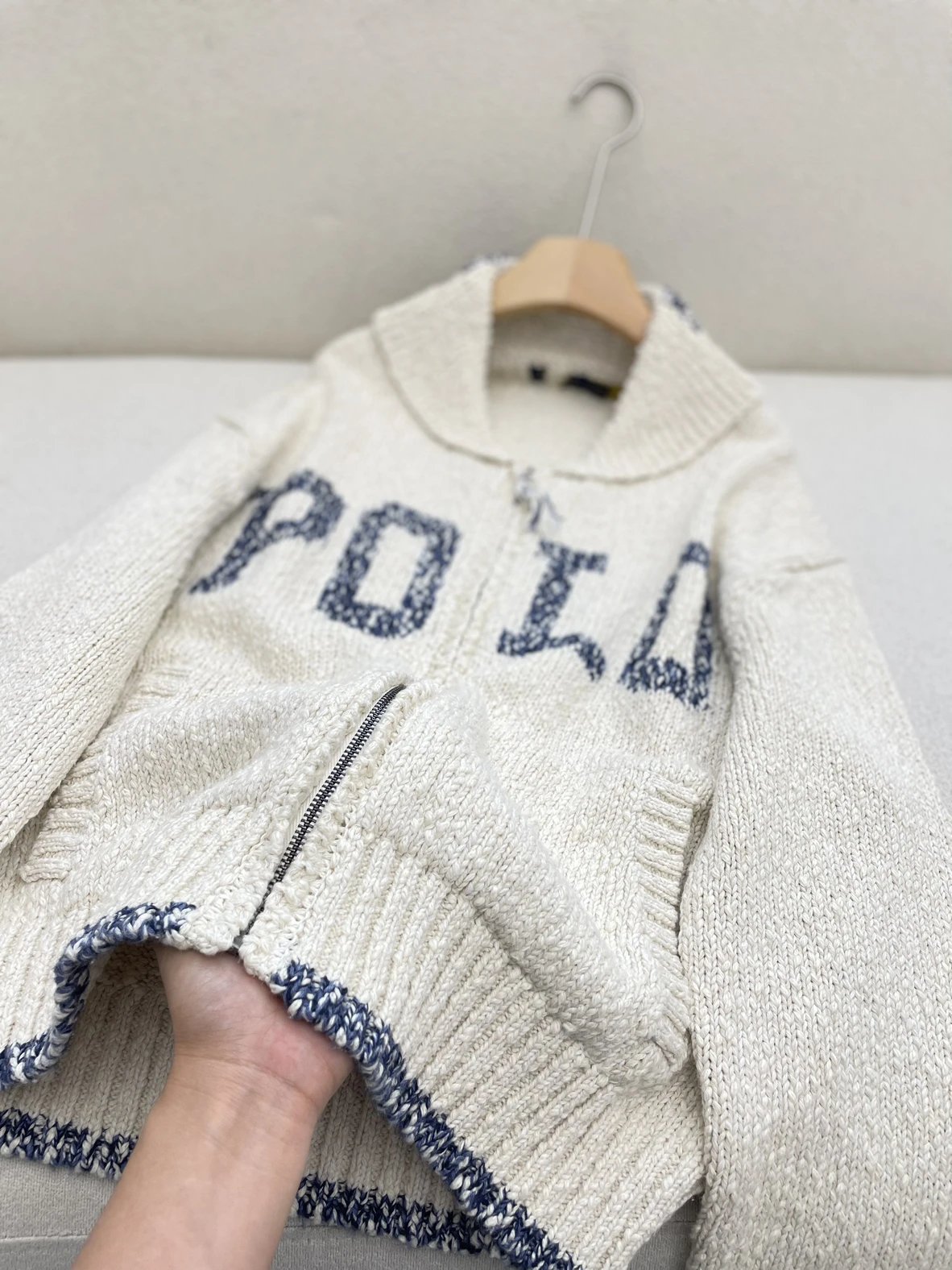 售完无补 纯元剪标 rl东京限定款 亚麻棉大肚纱风格 棒针Polo针织外套