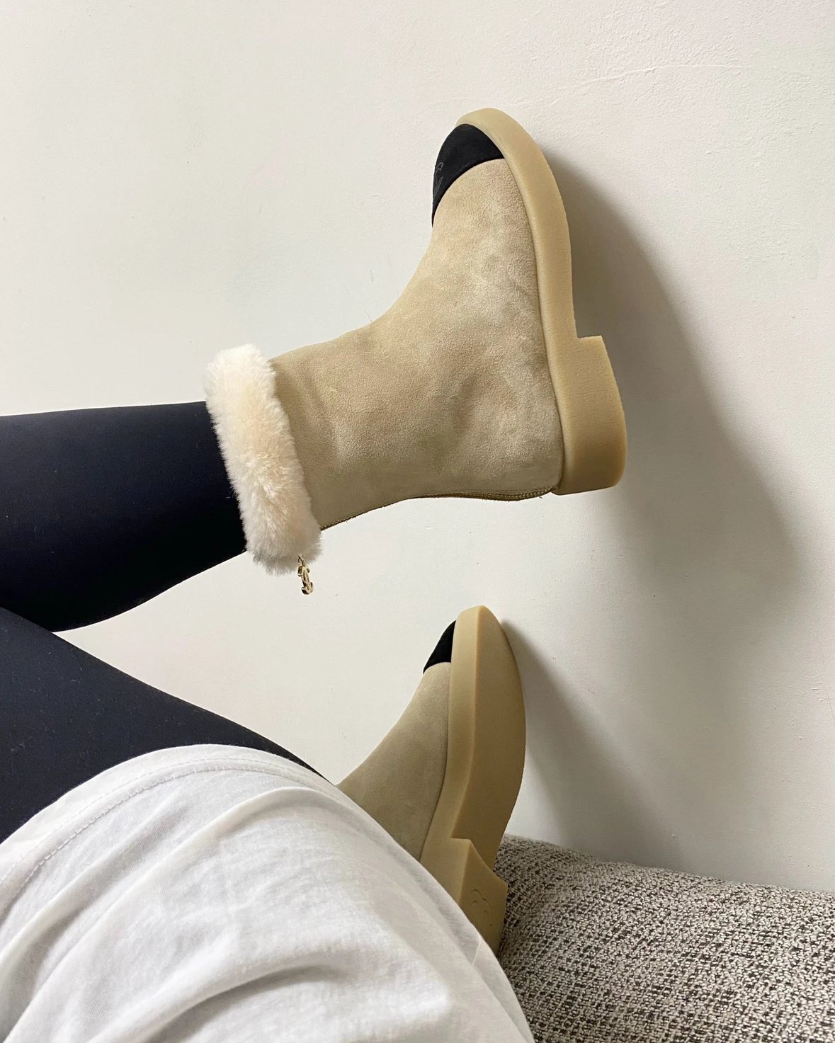 重磅渠道 香nn中筒雪地靴 麂皮撞色拼接 毛茸茸雪地靴