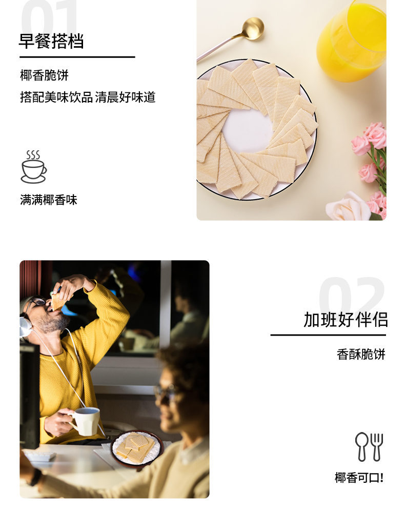 椰香脆饼105g*2盒 薄脆零食小吃【129元任选8件】