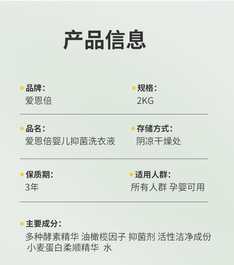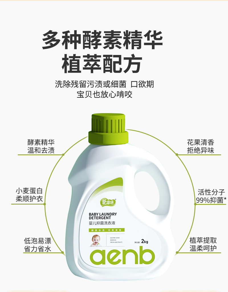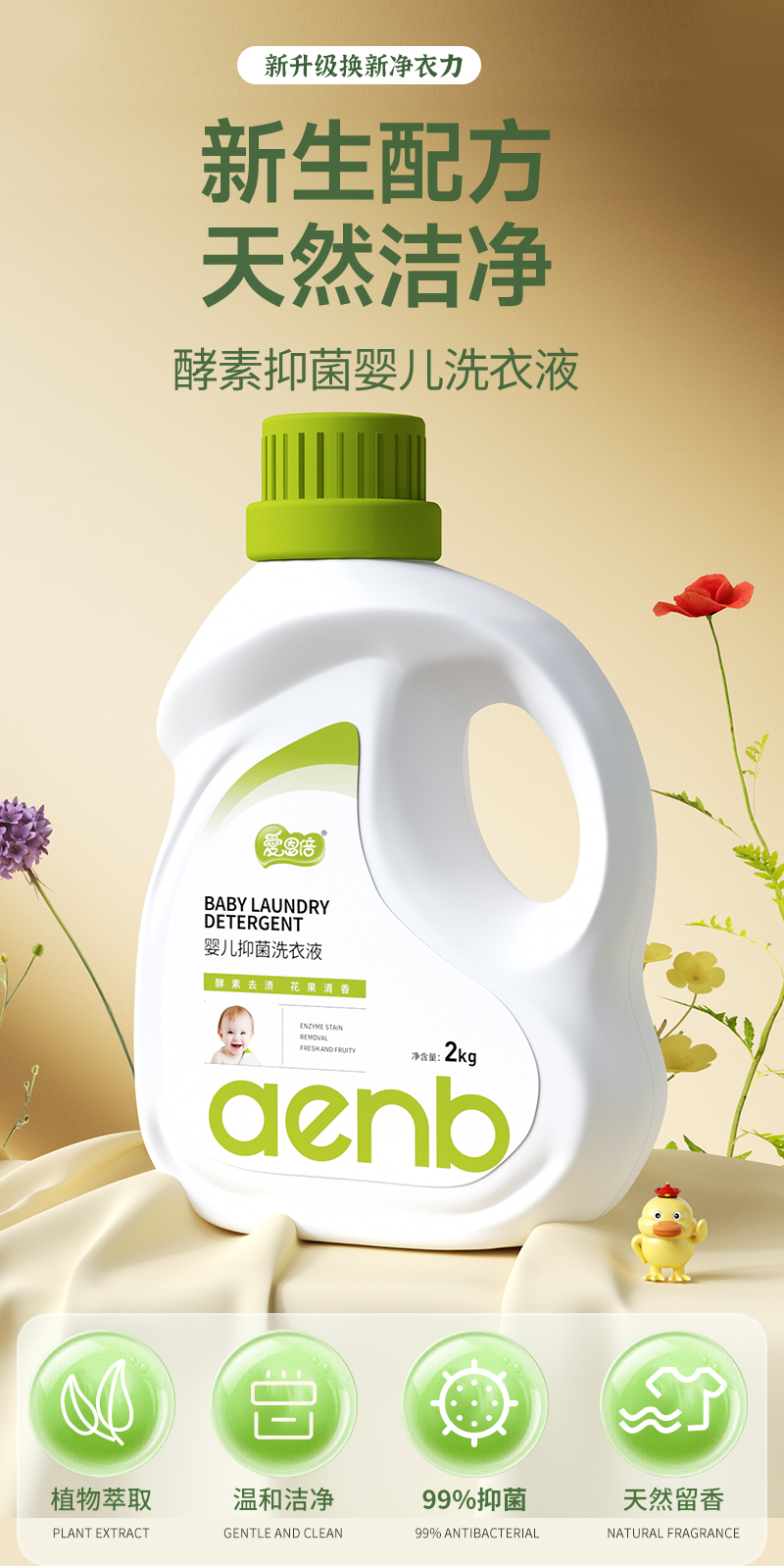 【2瓶装】爱恩倍婴儿成人洗衣液 2KG儿童去污清洗液洗衣液