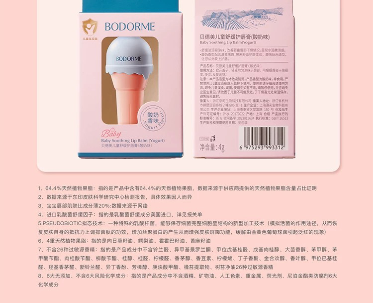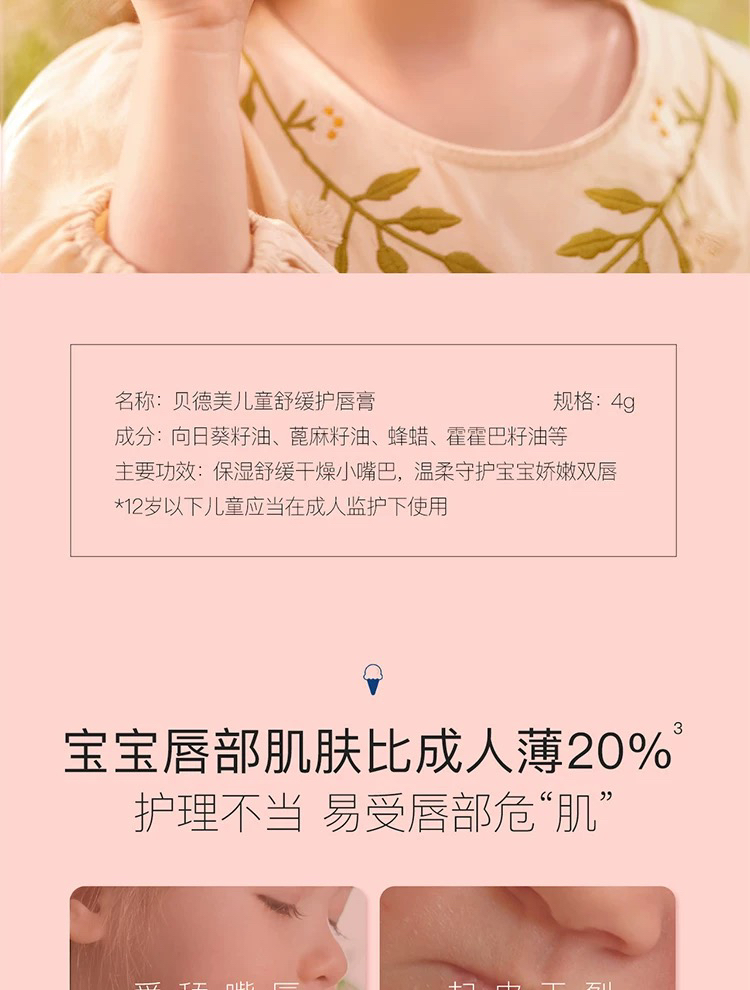 贝德美 儿童舒缓护唇膏(酸奶味)
