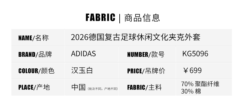 SFS正品 Adidas阿迪达斯2026世界杯德国队复古足球休闲文化高领夹克外套 KG5096