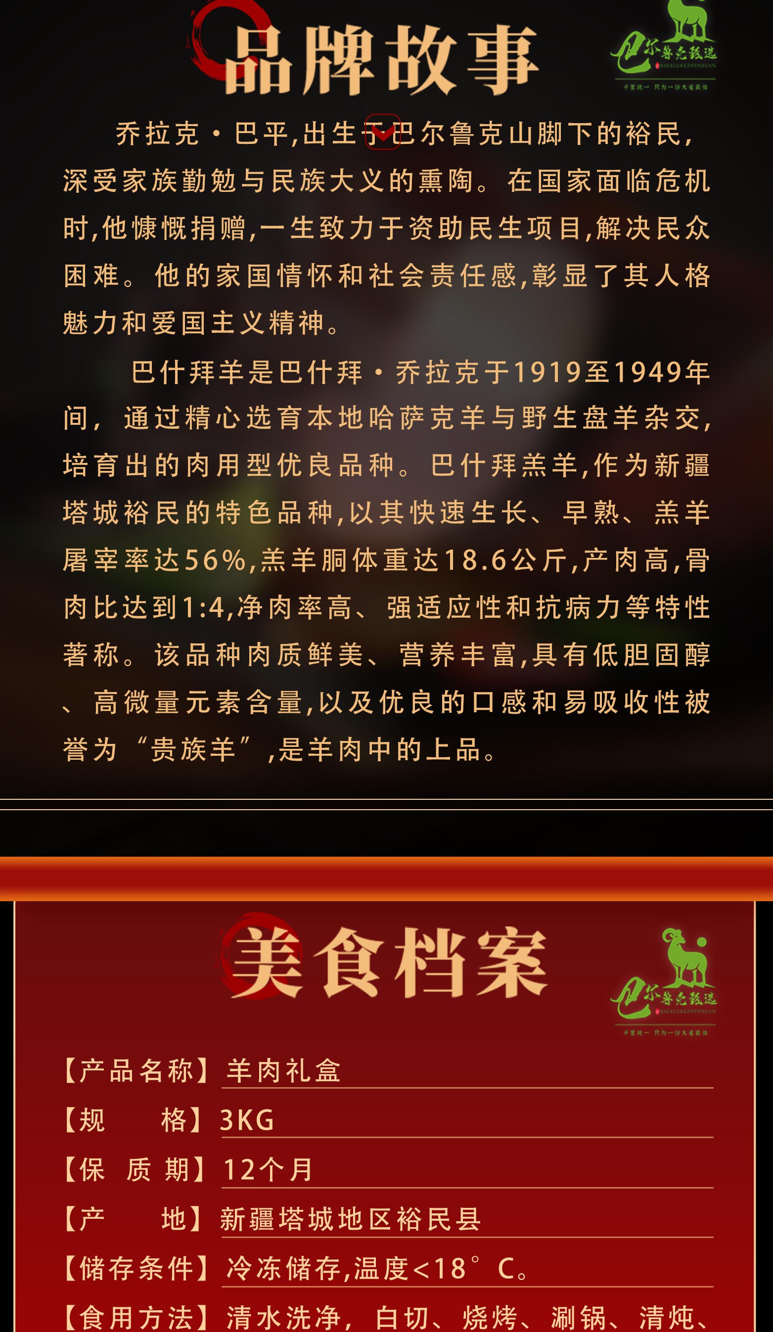 3公斤巴尔鲁克巴什拜羔羊精品礼盒