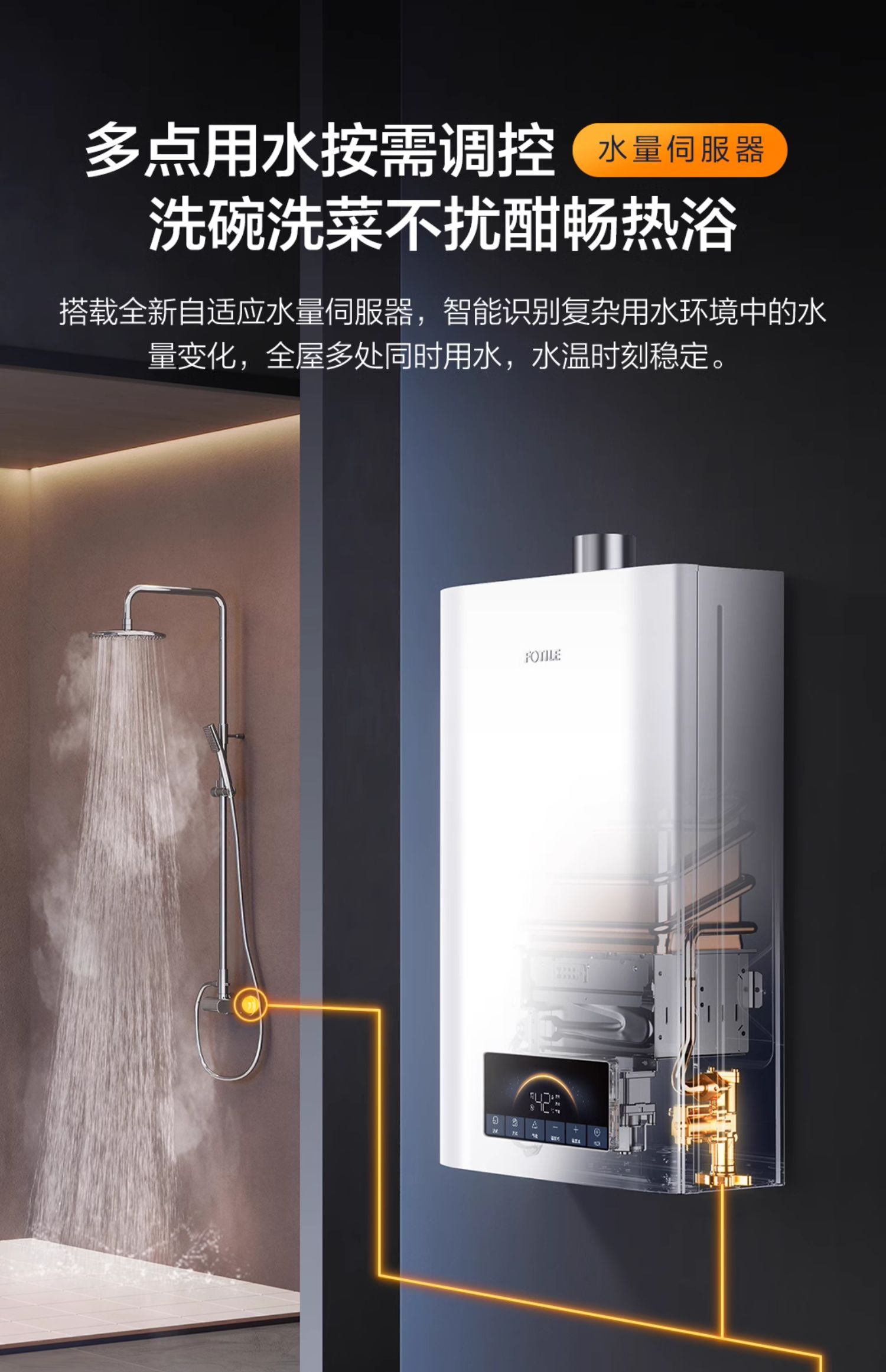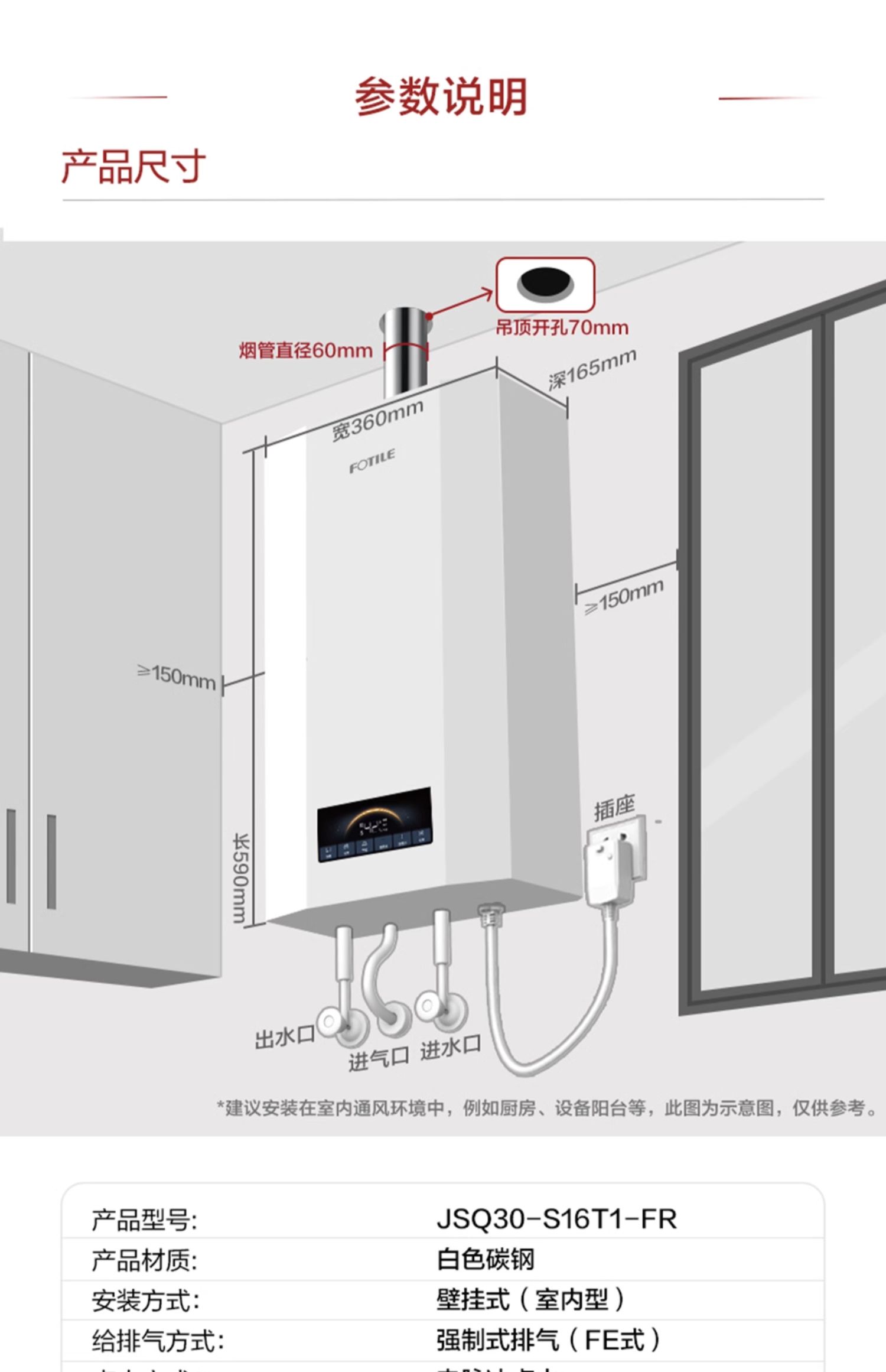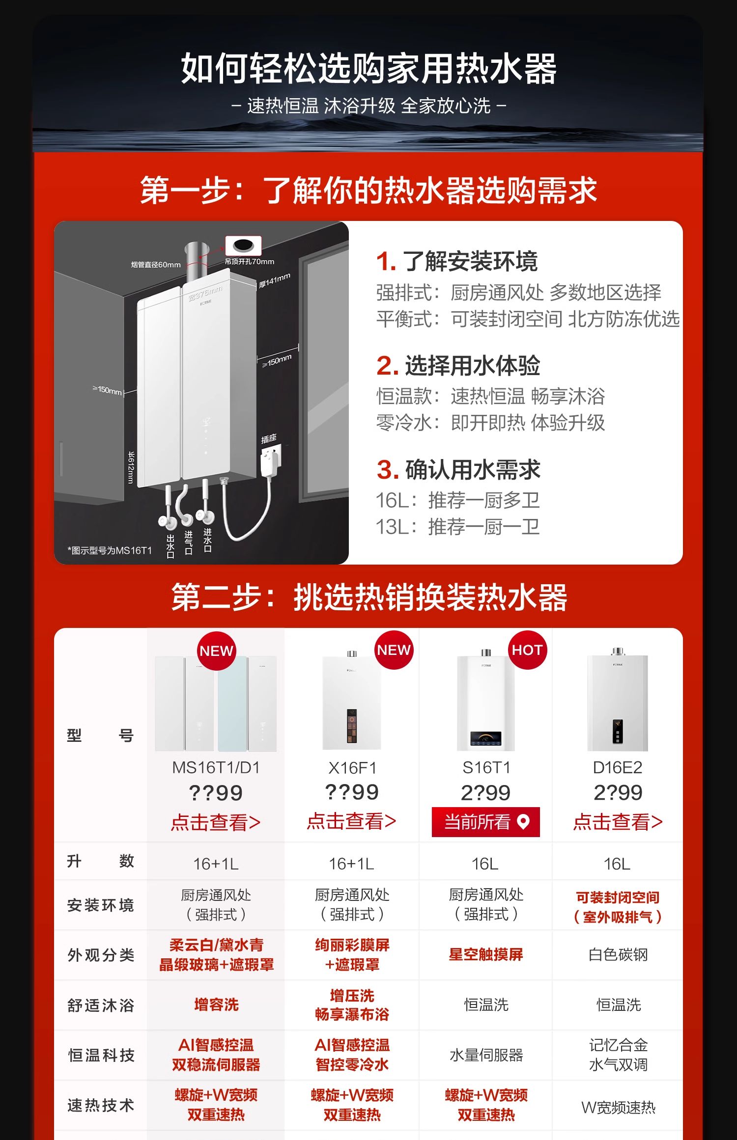 方太燃气热水器16升 水量伺服器 0.5℃精准控温 家用强排式热水器天然气防冻恒温JSQ30-S16T1 官方正品