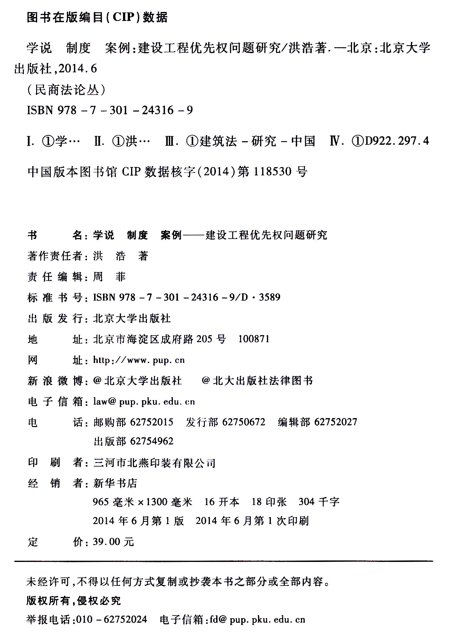 (仓发) 民商法论丛·学说 制度 案例:建设工程优先权问题研究/北京大学出版社/洪浩/9787301243169