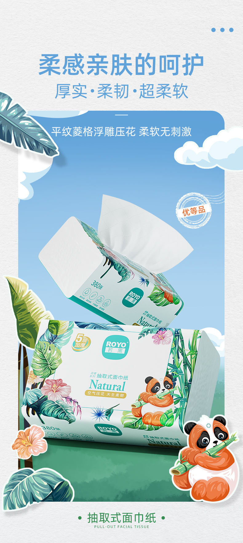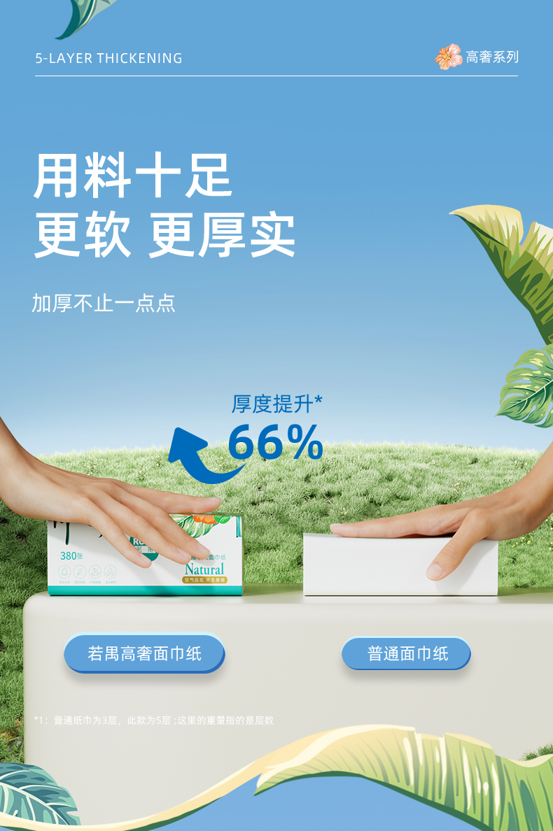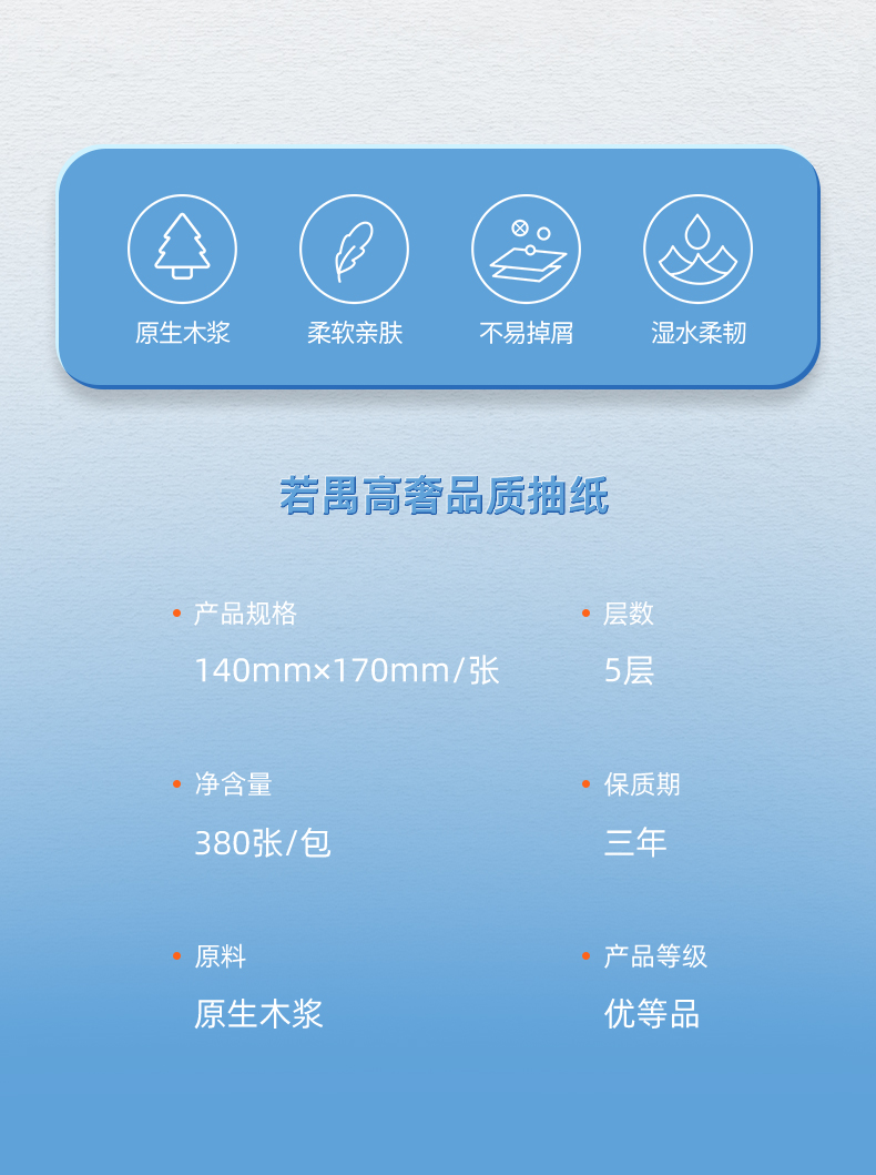 若禺软抽纸高奢禺宝系列5层加厚380张/包6包/提到手1提原生木浆云柔舒适RR2112