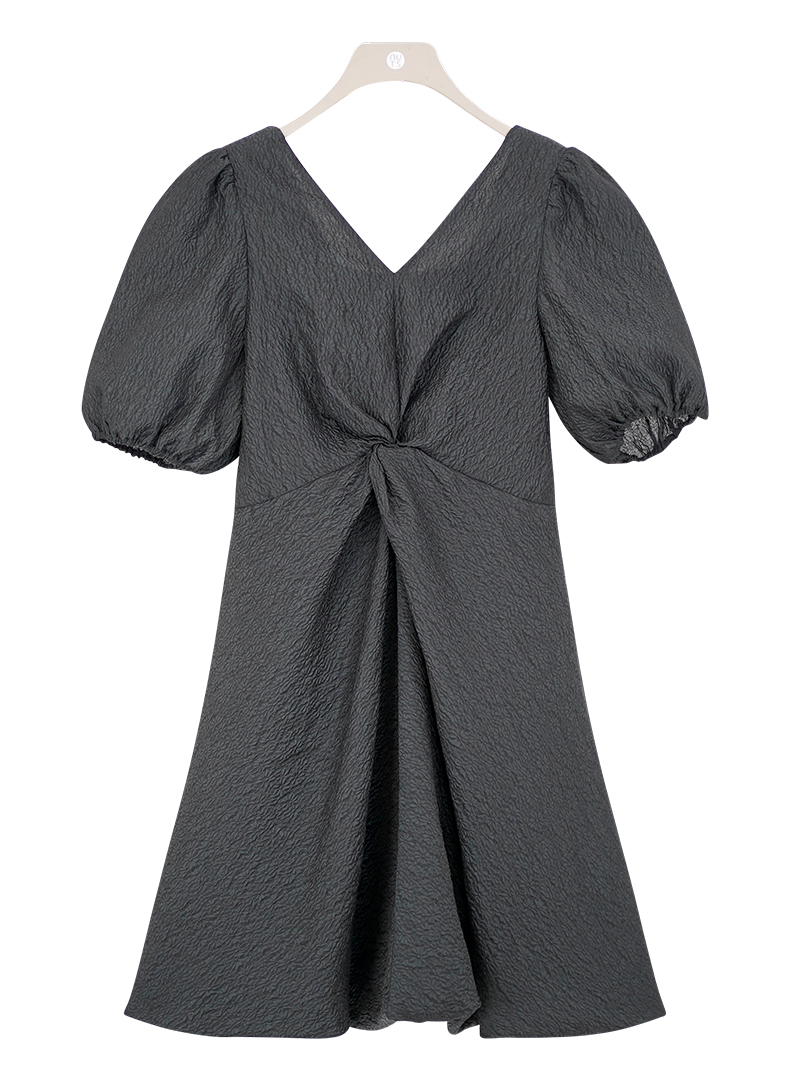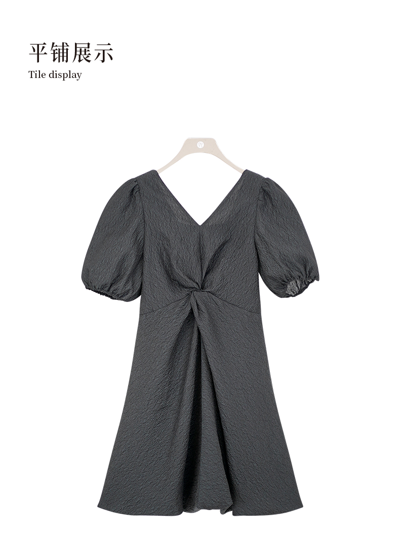 NUTS商场同款夏季纯色设计感褶皱肌理感短袖连衣裙429101349