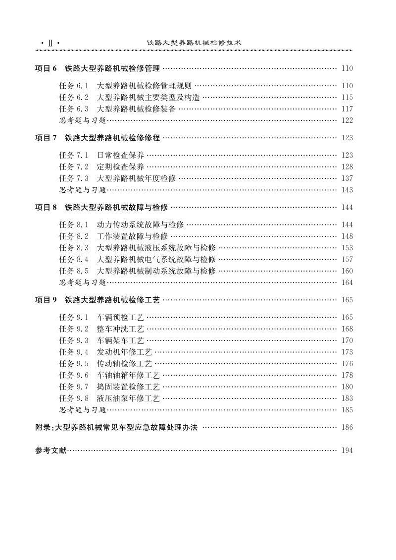本书为高等职业教育铁道养路机械应用技术专业系列教材之一。作者针对大型养路机械类专业课程的教学特点和行业特点,精心组织编写,辅以工程实例,形式新颖,重点突出,凸显校企合作,行业特点明显。本书共分为九个项目,将企业的岗位标准和学生的专业能力培养有机地结合在一起,并以够用为原则。本书可作为高等职业院校铁道养路机械应用技术专业、机电一体化技术专业、铁道施工和养路机械制造与维护专业学生的学习用书,也可以作为相关技术人员的培训用书。